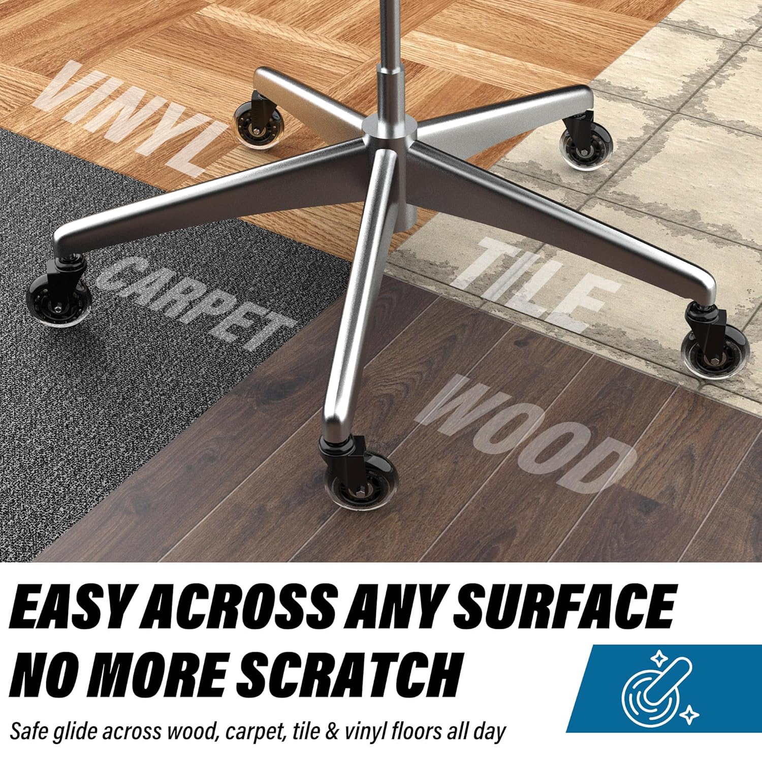 Leises Gleiten: Hartbodenrollen für Bürostuhl aus Polyurethan sind um 360° drehbar und gleiten leise, ohne Kratzer oder Spuren auf dem Boden zu hinterlassen; Stuhlrollen können zudem den Boden schonen und die Lebensdauer verlängern.
