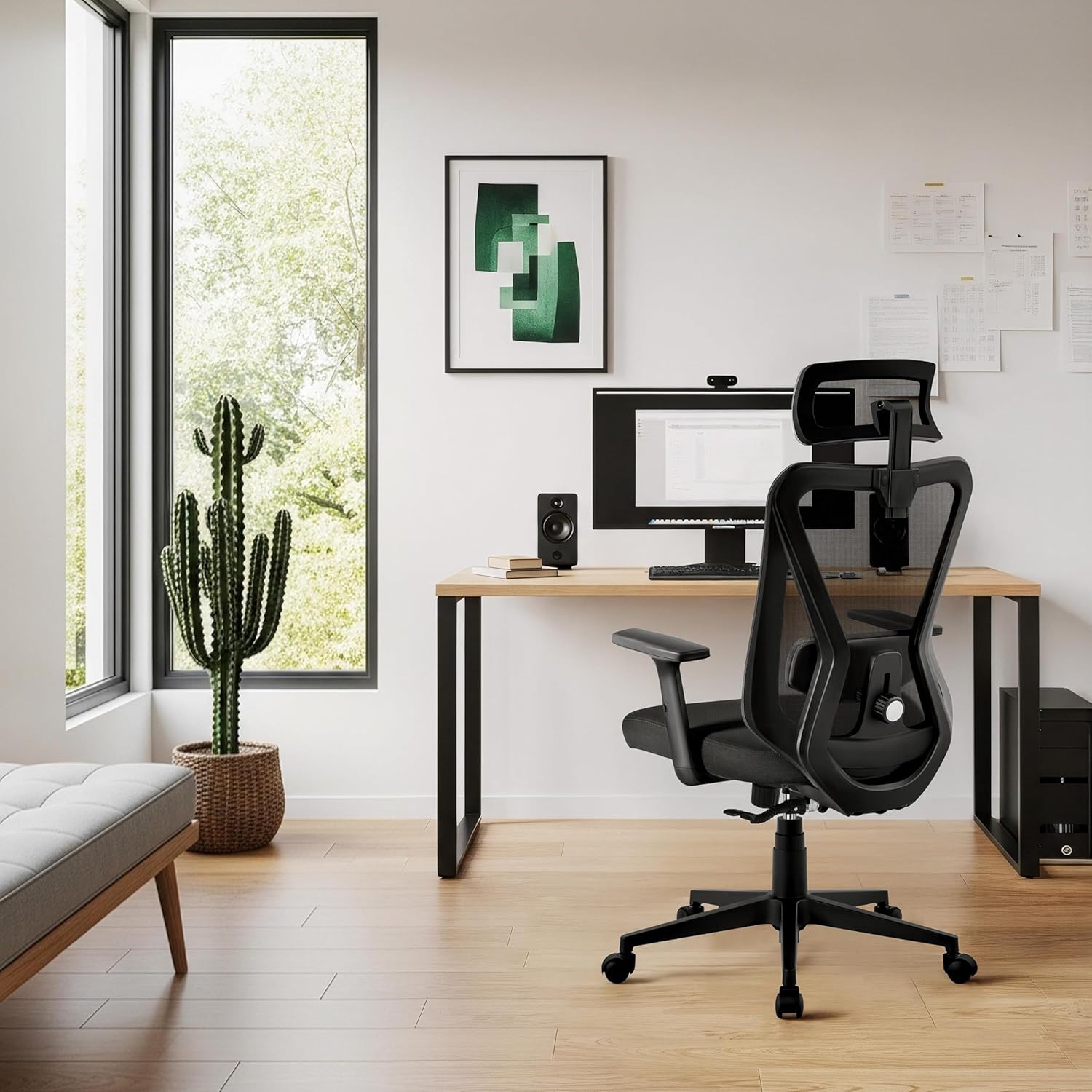 Yaheetech Ergonomic Office Chair with Adjustable Headrest, Armrests, Lumbar Support, Lockable Swivel Chair with 90°-130° Reclining Function, Height Adjustable, Black