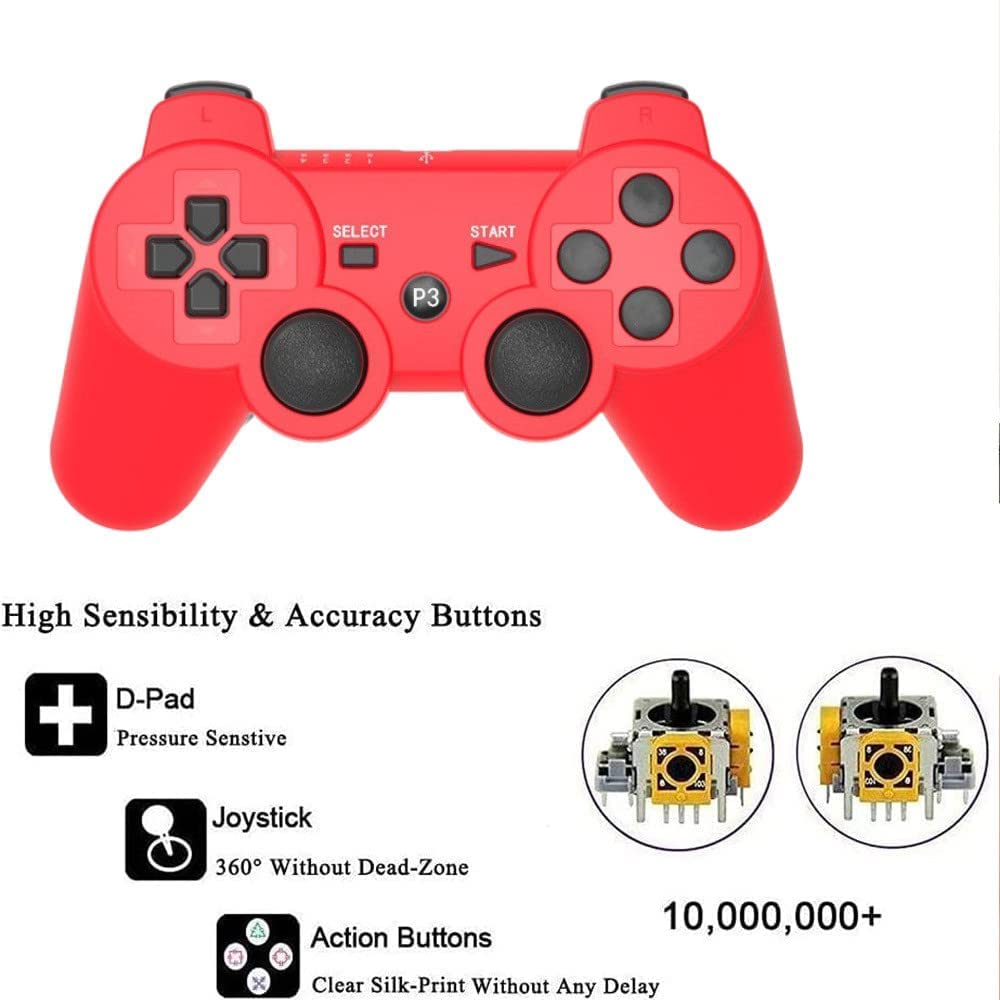 RUEIURI PS-3 Controller 2 Pack [2025 NEWEST] PS-3 Wireless Controller Playstation 3 Controller Wireless Bluetooth Gamepad with USB Charger Cable for PS-3 Console (Red+Green)