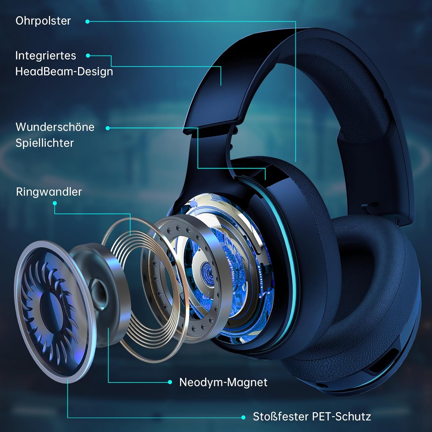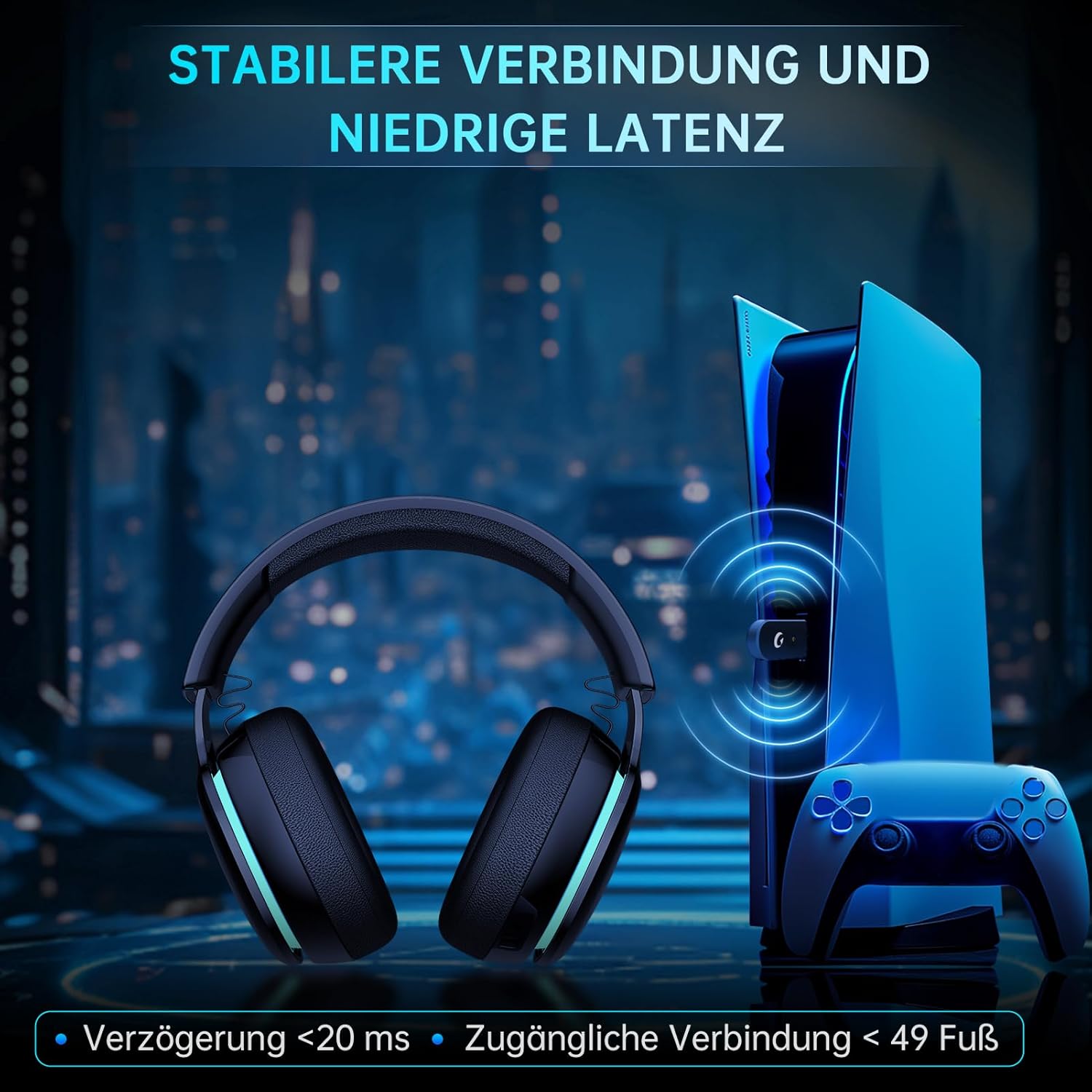 Stabile Verbindung und Stereoklang: Das kabellose Gaming-Headset Gvyugke Captain 300 kombiniert leistungsstarke verlustfreie 2,4-GHz-Funktechnologie für die zugängliche Verbindung bis zu 15 m in einem ungehinderten Raum. Eine geringere Latenz (≤20 ms) und ein 50-mm-Treiber mit 30 % zusätzlichem Soundeffekt sorgen dafür, dass die kabellosen Gaming-Kopfhörer eine höhere Qualität haben, die es Ihnen ermöglicht, die Stimme von Richtungen, Schritten und allen Details in Spielen klar wahrzunehmen und so ein noch intensiveres Spiel zu ermöglichen.