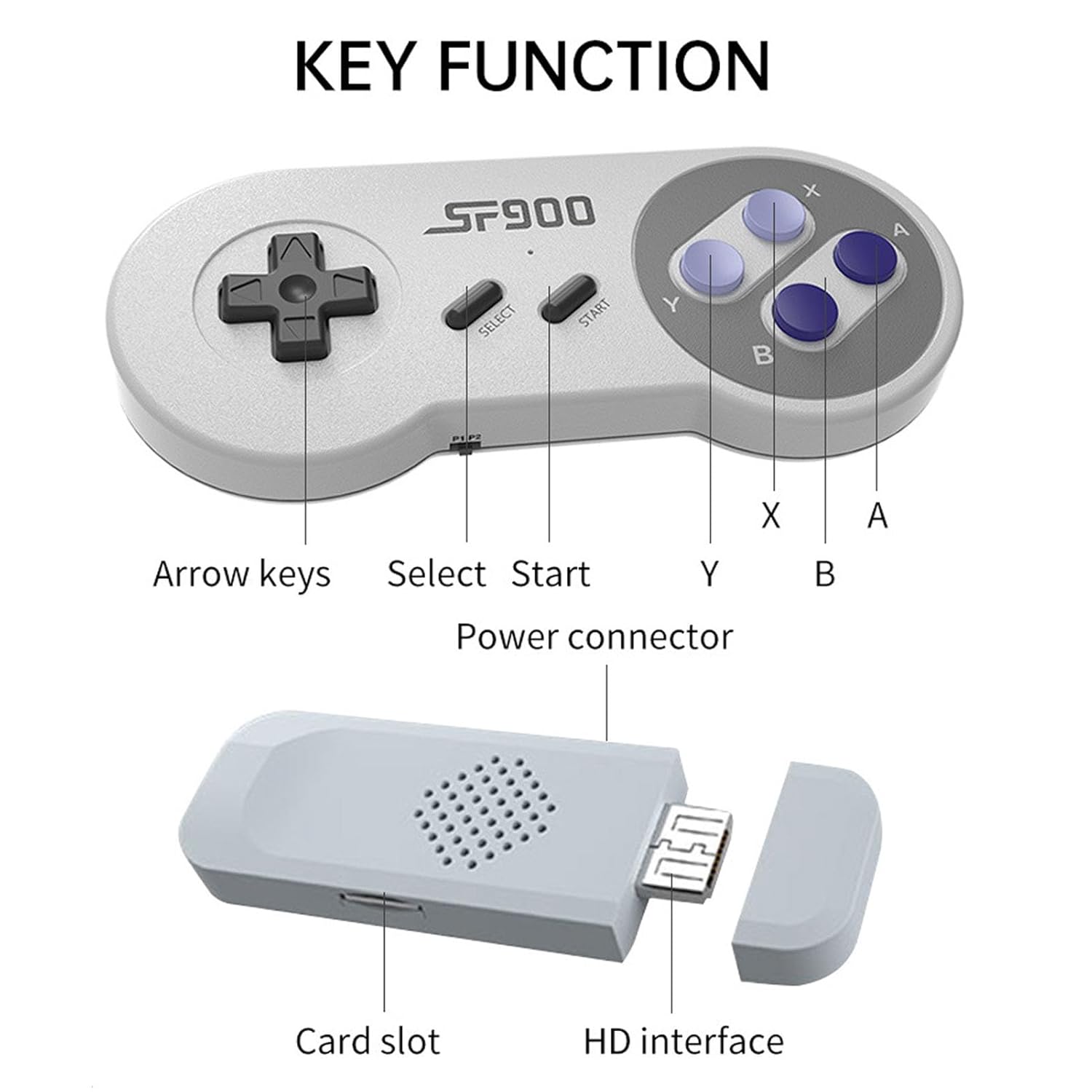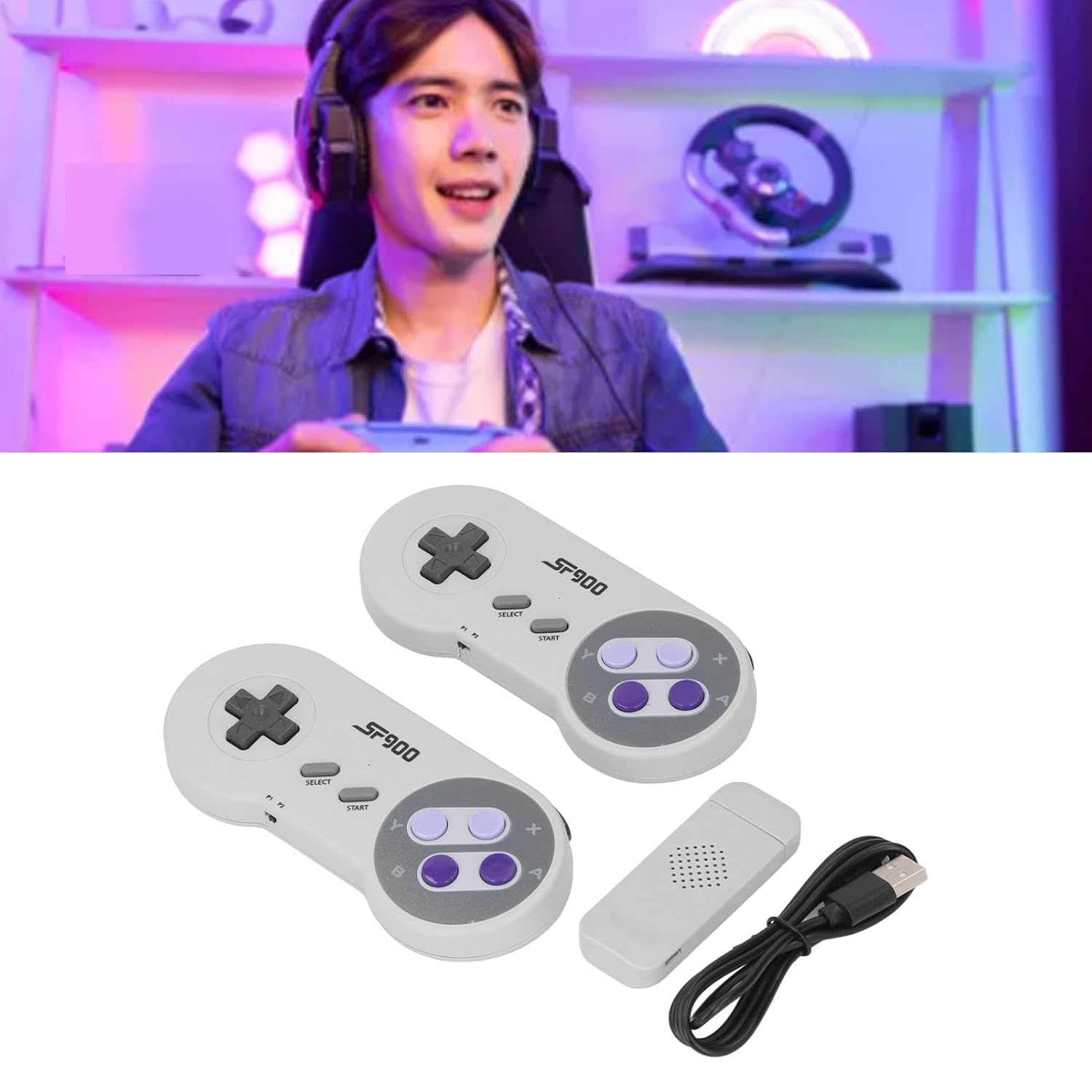 Sie können Ihre Controller mit der Konsole oder der Split-Karte genießen. Kompaktes und exquisites Design: Unser Retro-Gamestick verfügt über ein kompaktes und exquisites Design und ist somit der Begleiter für Spiele am PC. Sein stilvolles Erscheinungsbild vergrößert nicht nur Ihren Bewegungsspielraum, sondern sorgt auch dafür, dass es problemlos in Ihre Tasche oder Reiseausrüstung passt. Genießen Sie den Komfort, Ihre Lieblings-Retro-Spiele immer zur Hand zu haben, egal wo Sie sind. Das durchdachte