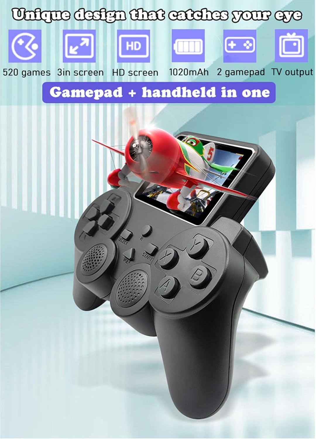 Arespark Retro Videospielkonsole, 3 Zoll Handheld Spielkonsole mit 2 Gamepads, Retro Game Console Für Zwei Spieler Spiele Und TV-Ausgang, Tragbare Retro Konsole mit 520 klassisches Spiele