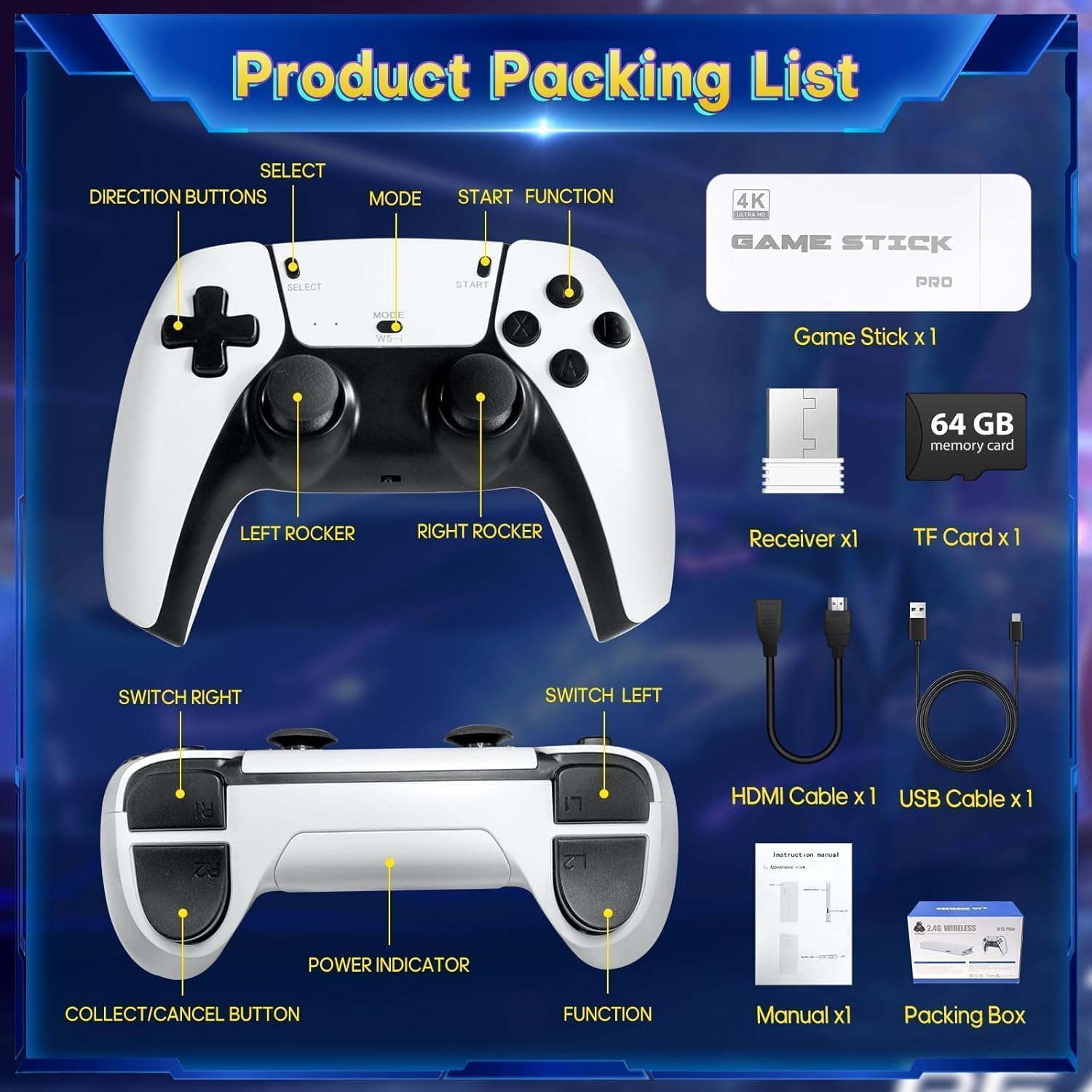 【Einfache Installation – HDMI Plug & Play】Keine komplizierten Installationen, kein Internet, kein Konto, keine Updates erforderlich. Einfach den Gamestick per HDMI an den Fernseher anschließen, per USB mit Strom versorgen und sofort loslegen. Ideal für Wohnzimmer, Gästezimmer oder auch unterwegs mit Freunden.