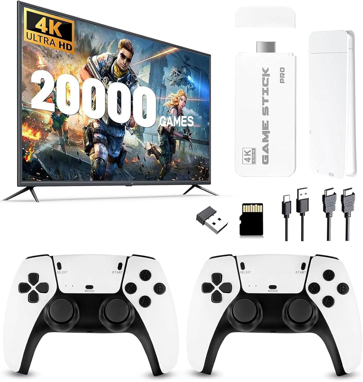 ASTEKID Retro Console with 20,000+ Games, Retro Game Console Game Stick, HDMI Plug & Play with 2 Wireless Controllers, Classic Video Game Console, Gift for Family & Friends (128G)