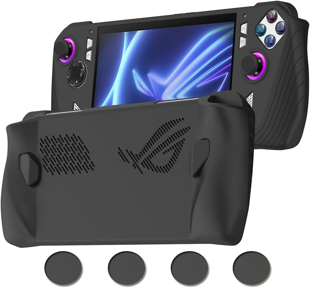 ASUS Rog Ally Silicone Case Cover Non-Slip Shockproof Cover for ASUS Rog Ally Gaming Console with Non-Slip Thumb Grips (Black)