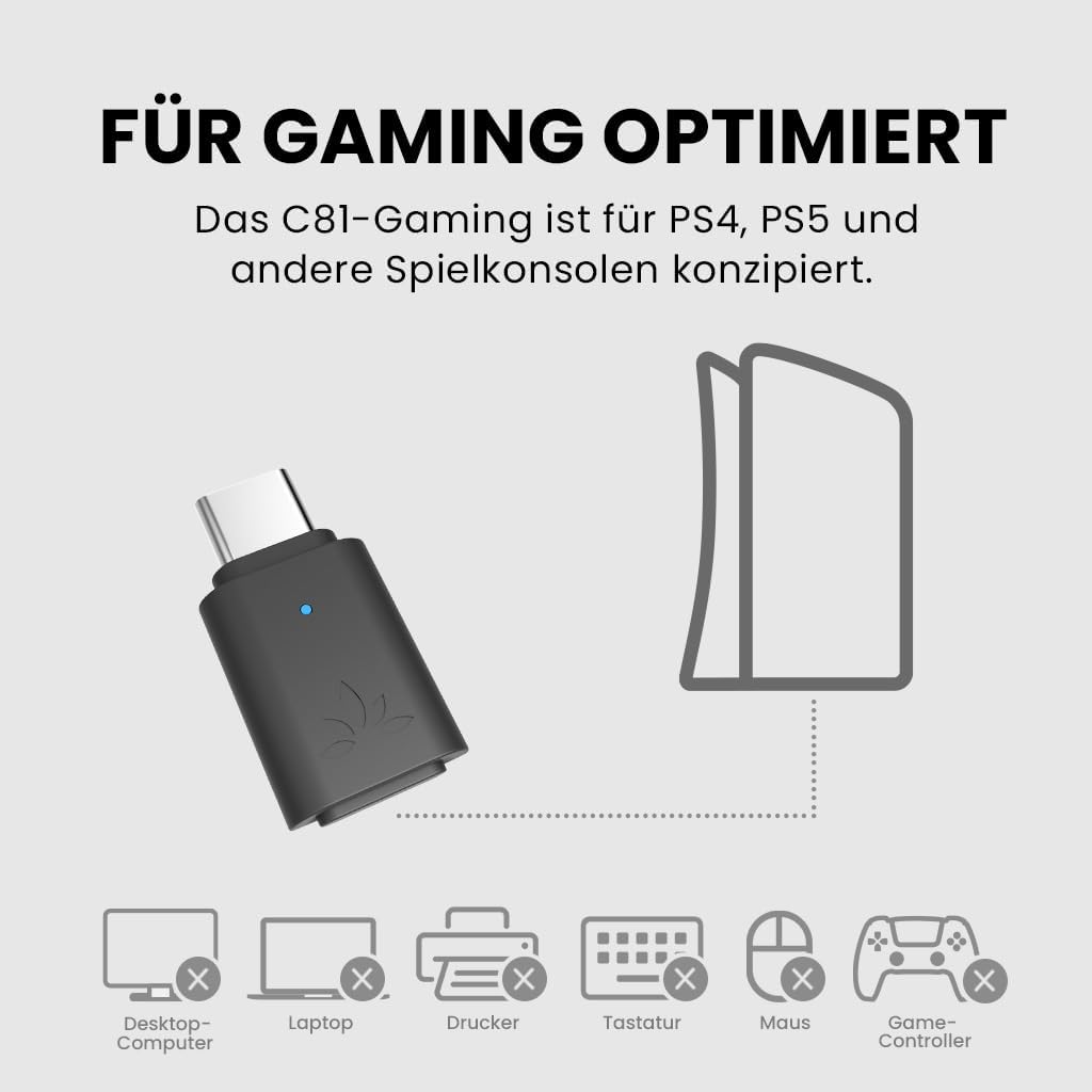Avantree C81-Gaming – USB-C Bluetooth 5.3 Audio Adapter for PS5, Qualcomm Chip, aptX Adaptive & HD, Premium Sound, Compatible with AirPods, Bose Headphones & More