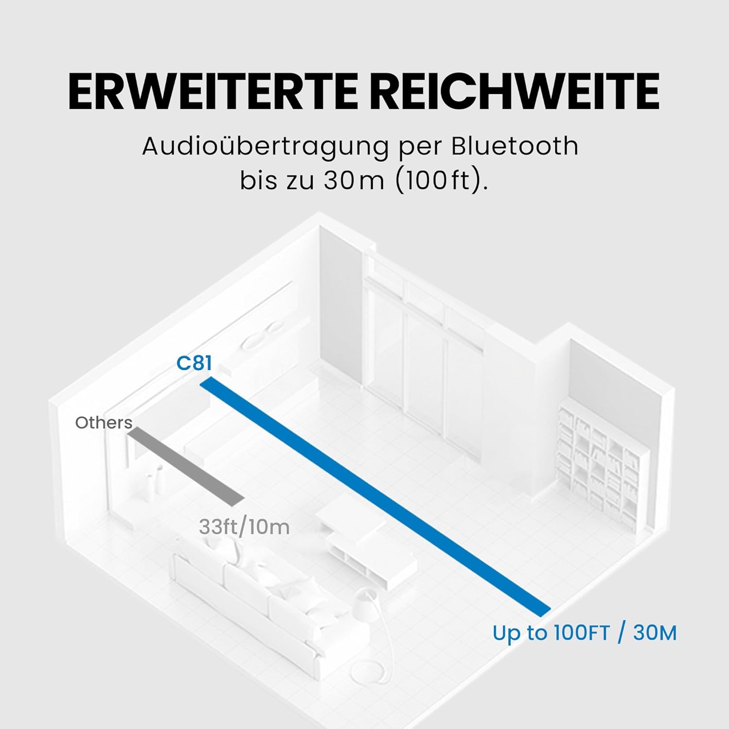 A:Der C81-Gaming unterstützt aptX Adaptive und aptX HD für hochwertigen Klang mit geringer Latenz. Um diese Vorteile zu nutzen, müssen Ihre Kopfhörer dieselben Codecs unterstützen; andernfalls hängen Klangqualität und Latenz von den Fähigkeiten Ihres Headsets ab. (Der Avantalk Aria Pro 3 unterstützt gleichzeitig sowohl hohe Audioqualität als auch geringe Latenz.)