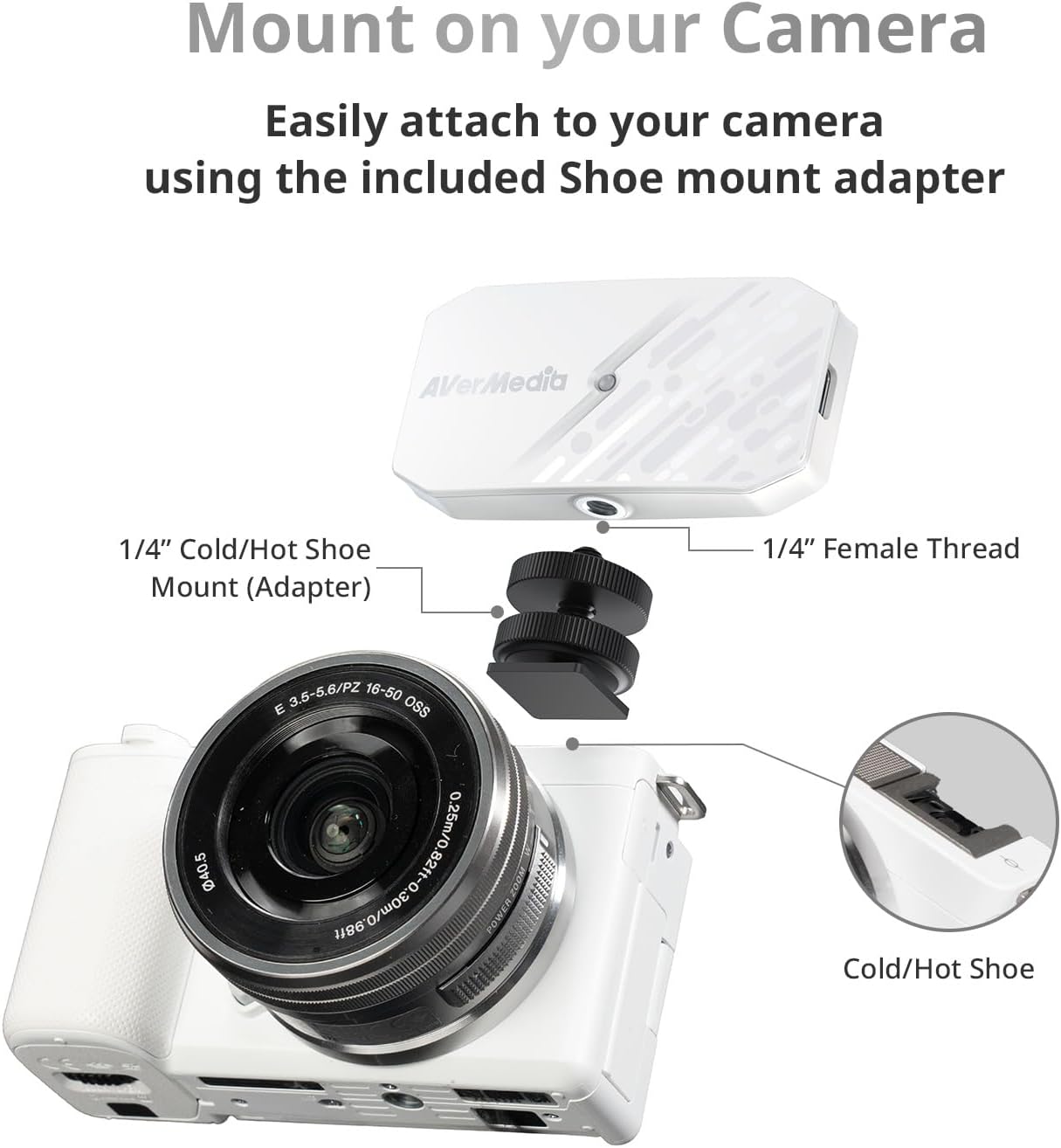 Kompakt und leicht – lässt sich direkt auf Ihrer Kamera montieren.