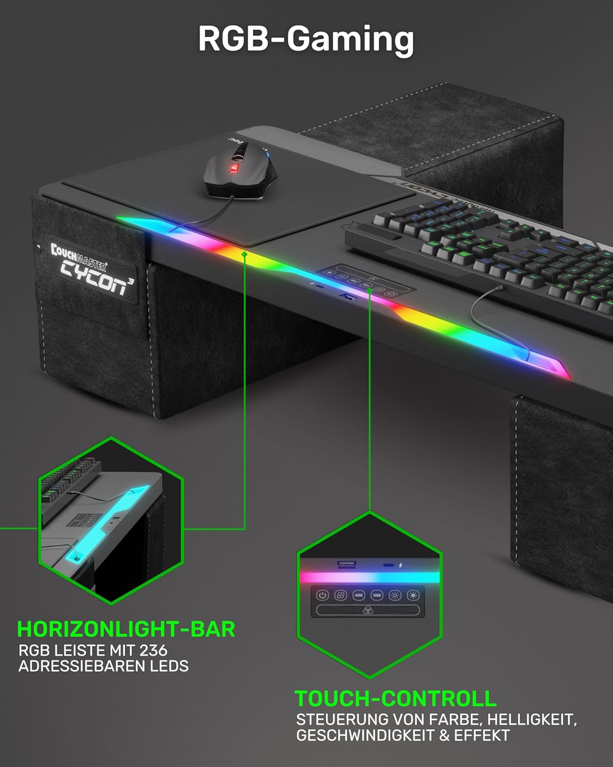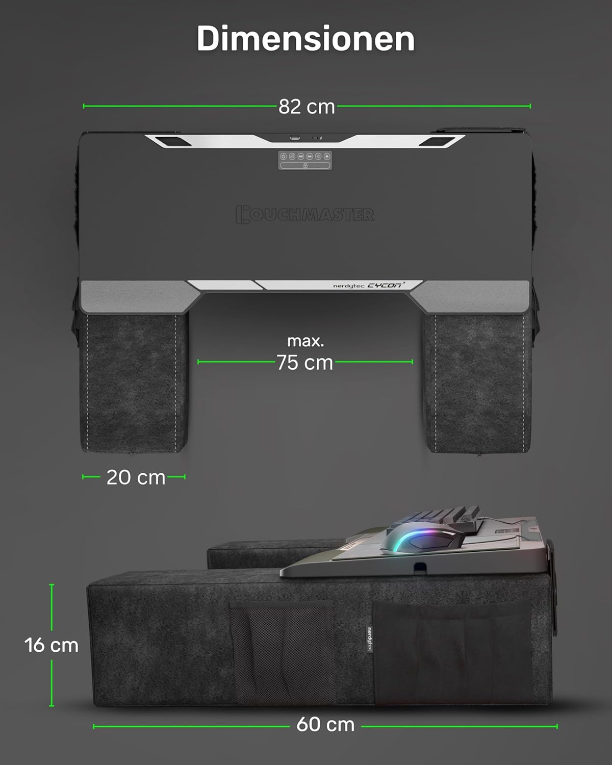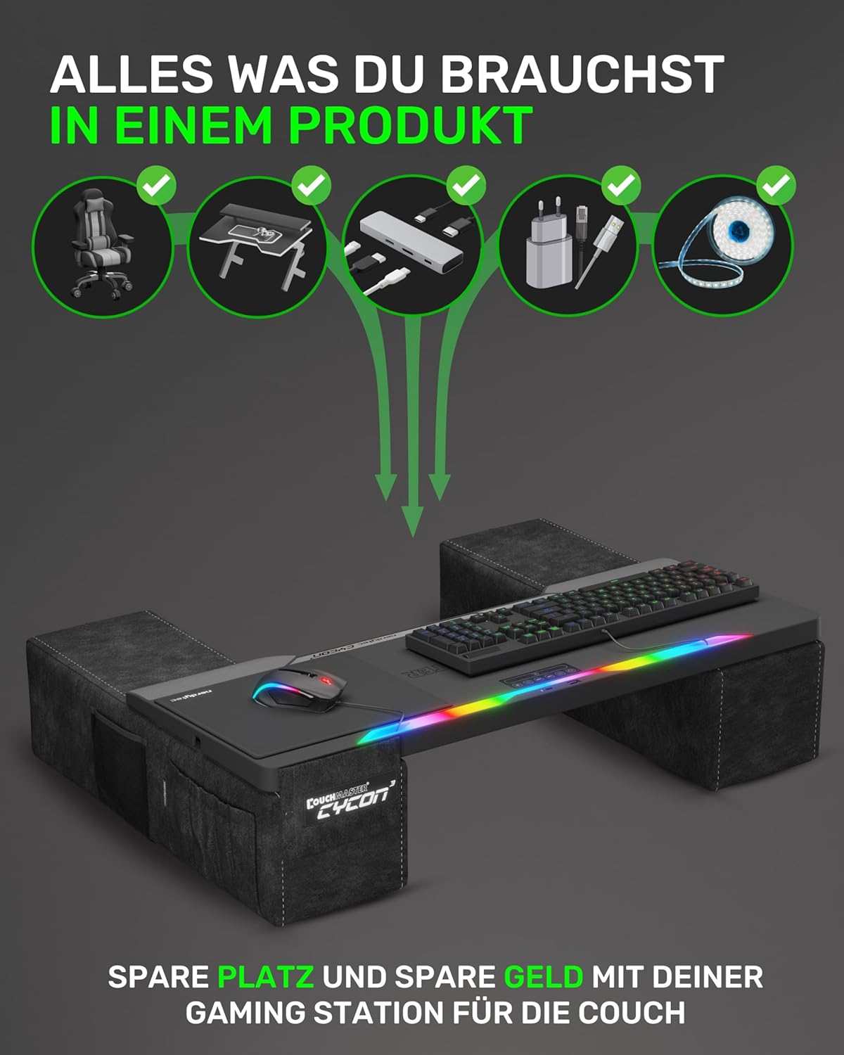 Couchmaster® Cycon, Ergonomic Cushion For Couch Gaming, Incl. Cushions, Black, Microfibre