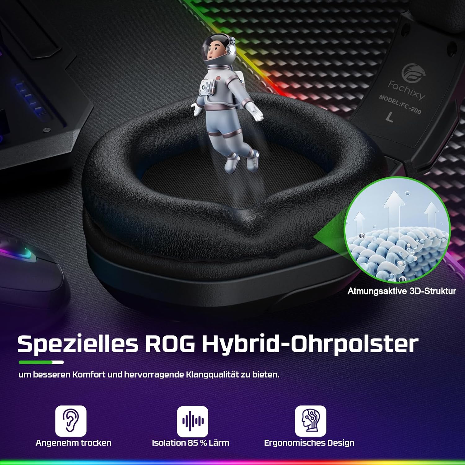 Sanfte RGB-Beleuchtung: Das Fachixy-Headset ist mit einem coolen RGB-Beleuchtungsdesign ausgestattet. Nach dem Anschließen an den USB-Anschluss kann sich der LED-Lichteffekt dynamisch mit dem Spielverlauf ändern. Erwecken Sie Ihre LED-RGB-Fantasien mit lebendigen, auffälligen Lichtern in gedämpftem Licht zum Leben. Sanfte RGB-Beleuchtung, stilvoll und attraktiv, ist eine coole Ergänzung für Videoaufnahmen und Live-Übertragungen.