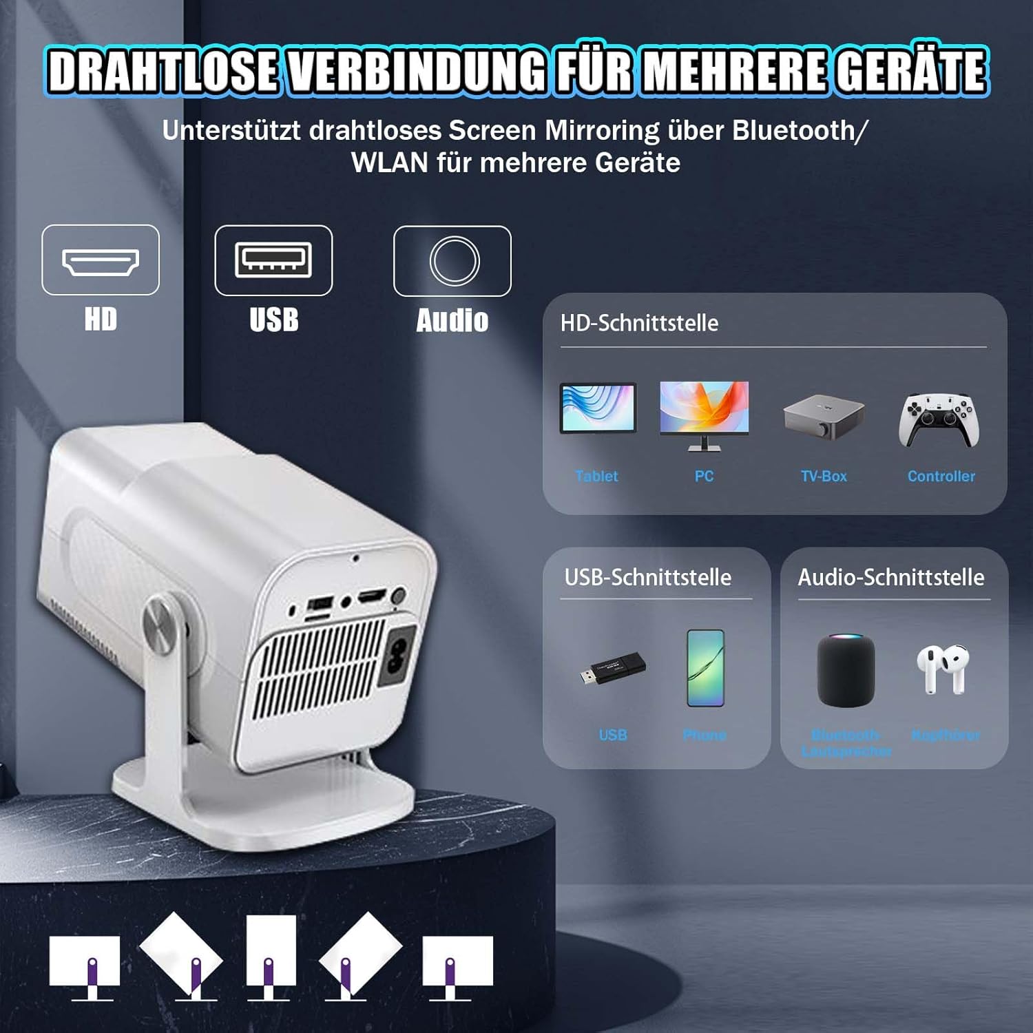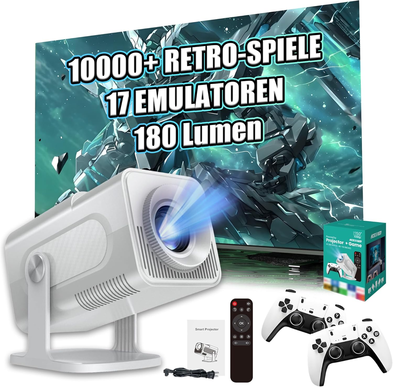 Kabellose Verbindung mit mehreren Geräten & 1280 x 720P Auflösung: Die HCS350 Pro Spielekonsole unterstützt mit integrierten Spielen, verfügt über ein HD-Display mit 720P und 180 Lumen Helligkeit. Dieses Gerät kann problemlos über Bluetooth und WLAN mit Telefonen, Laptops, Tablets und anderen Geräten verbunden werden. Es eignet sich für verschiedene Szenarien wie Home-Entertainment, Treffen mit Freunden und leichte Büroarbeiten. Das 720P HD-Bild in Kombination mit der hohen Helligkeit liefert klare Details und leuchtende Farben. Egal, ob Sie in Spiele eintauchen oder Filme schauen, Sie können ein beeindruckendes visuelles Erlebnis genießen (Hinweis: HD-Kabel nicht im Lieferumfang enthalten).