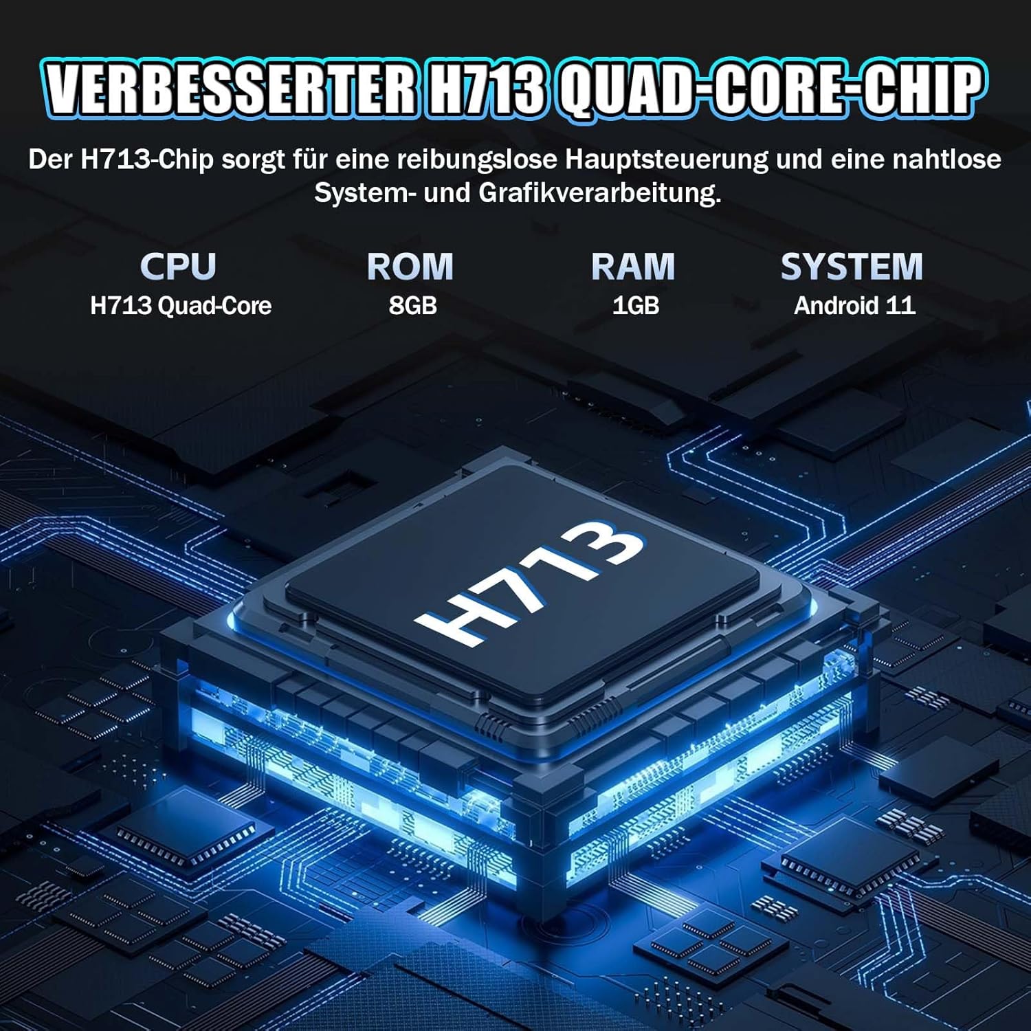 Android 11- und H713-Spielechip sowie Bluetooth- und WLAN-Unterstützung Der intelligente kabellose Projektor HCS350 Pro mit WLAN und Bluetooth läuft unter dem flüssigen Android 11-System und verfügt über den H713-Spielechip mit Quad-Core-Architektur, der für ein reibungsloses Spielerlebnis konzipiert ist, sodass Sie die Freude an Retro-Spielen noch einmal erleben können. Es unterstützt Dualband 2,4G+5G WLAN für ein stärkeres Signal und stabilere Verbindungen. Das integrierte Bluetooth-Modul ermöglicht eine schnelle und komfortable Datenübertragung sowie eine einfache Kopplung mit Bluetooth-Geräten für ein komfortableres Erlebnis