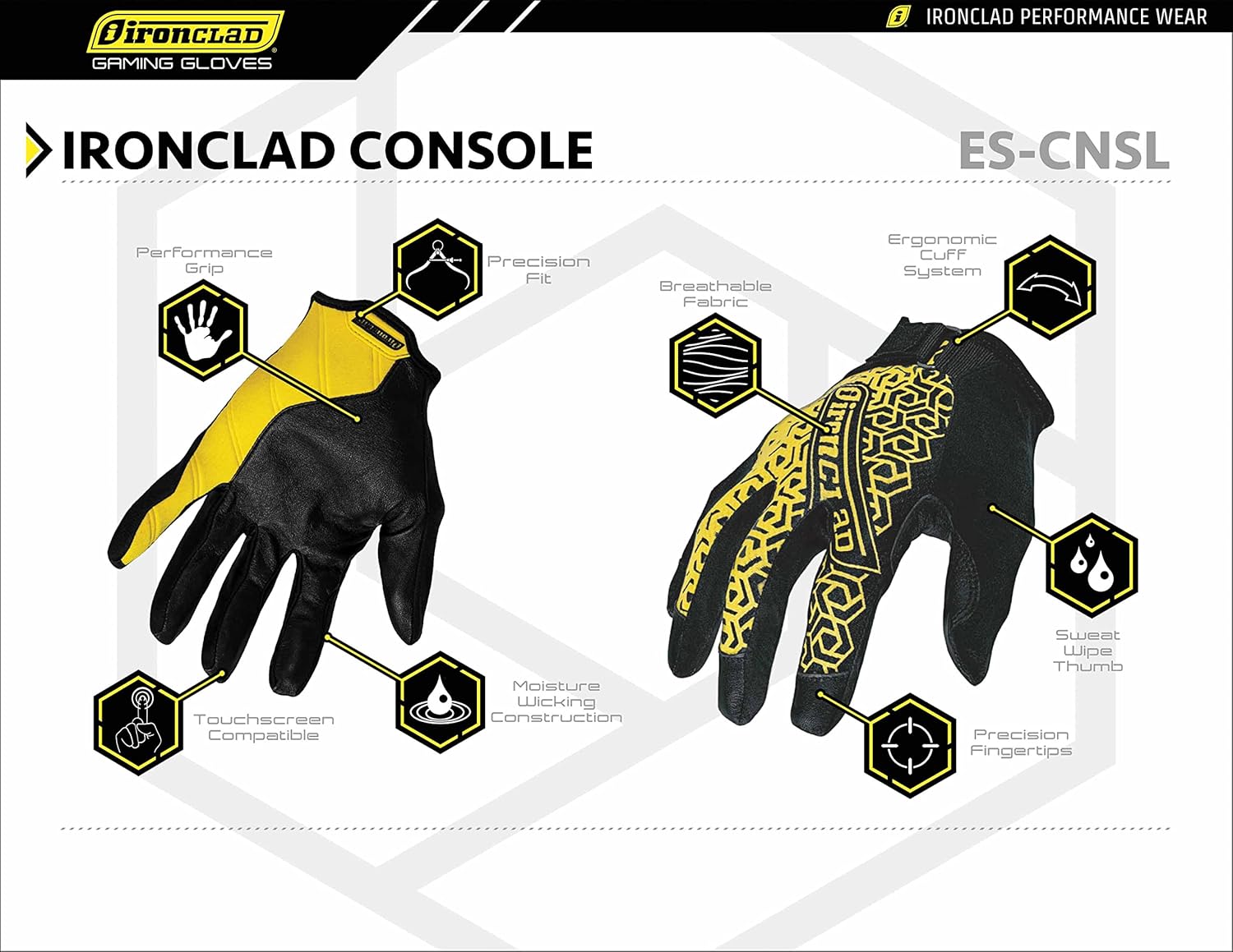 Ironclad Console Gaming Gloves, Precision Fit, Performance Grip, Touchscreen Compatible, Machine Washable, (1 Pair), Size M (ES-CNSL-03-M)