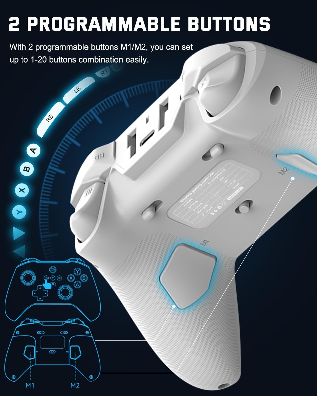 Multifunktionaler kabelloser Gamecontroller: Der kabellose Controller mit reaktionsschnellen analogen Auslösern, Hall-Effekt-Joystick, klickbaren Daumensticks, Turbo, Doppelvibration, 6-Achsen-Gyro, 2 programmierbaren Makros und ABXY-Tastenwertaustauschfunktion für das ultimative mobile Spielerlebnis. (Vibration und 6-Achsen-Gyro werden nur auf PC/PS3/PS4/Switch unterstützt)