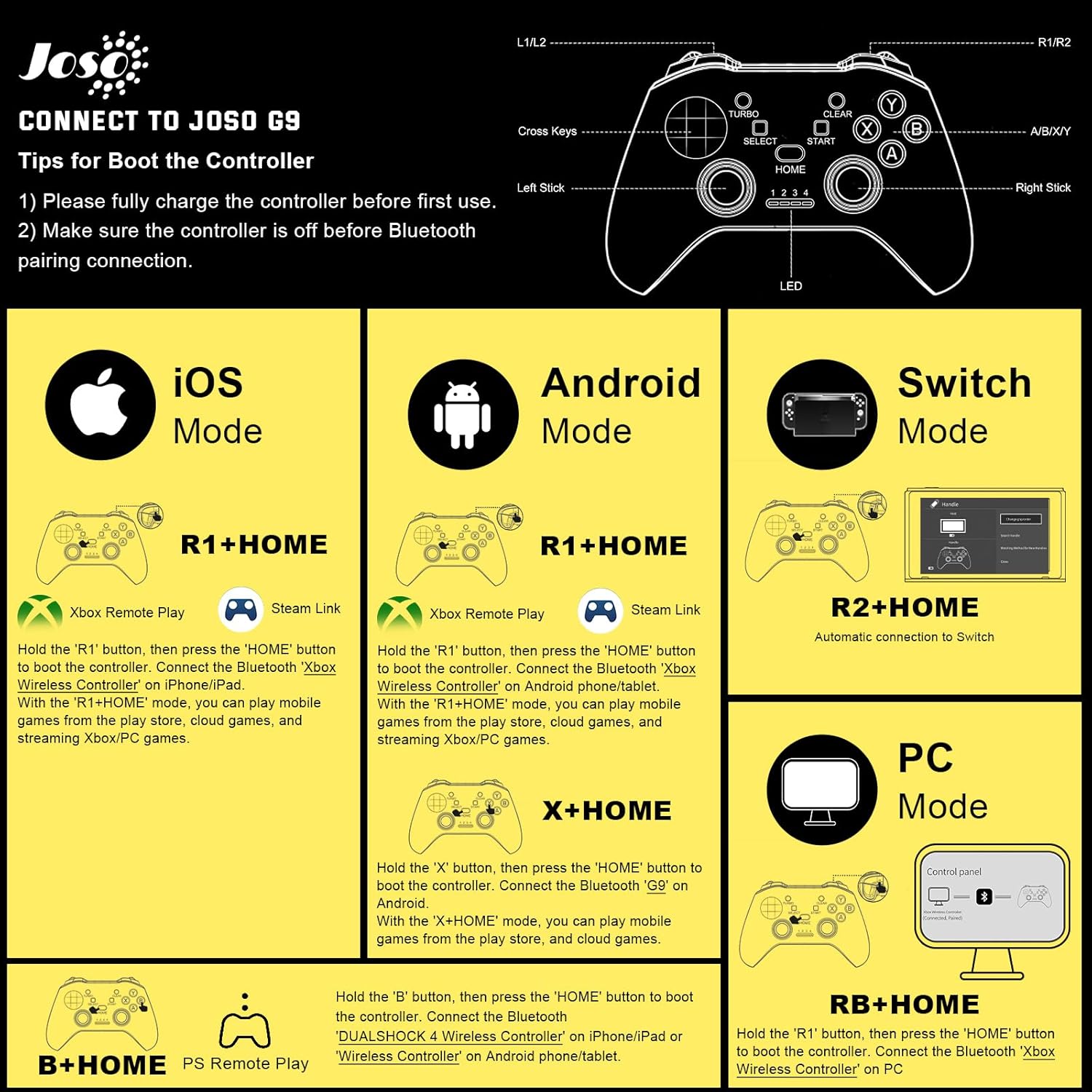 Joso Wireless Mobile Gaming Controller für iOS, Android, iPad, Tablet, PC, Telefon-Controller für iPhone 14/13/12/11, Galaxy S22/21, Android Handys, COD Mobile, Genshin Immpact, Cloud Gaming
