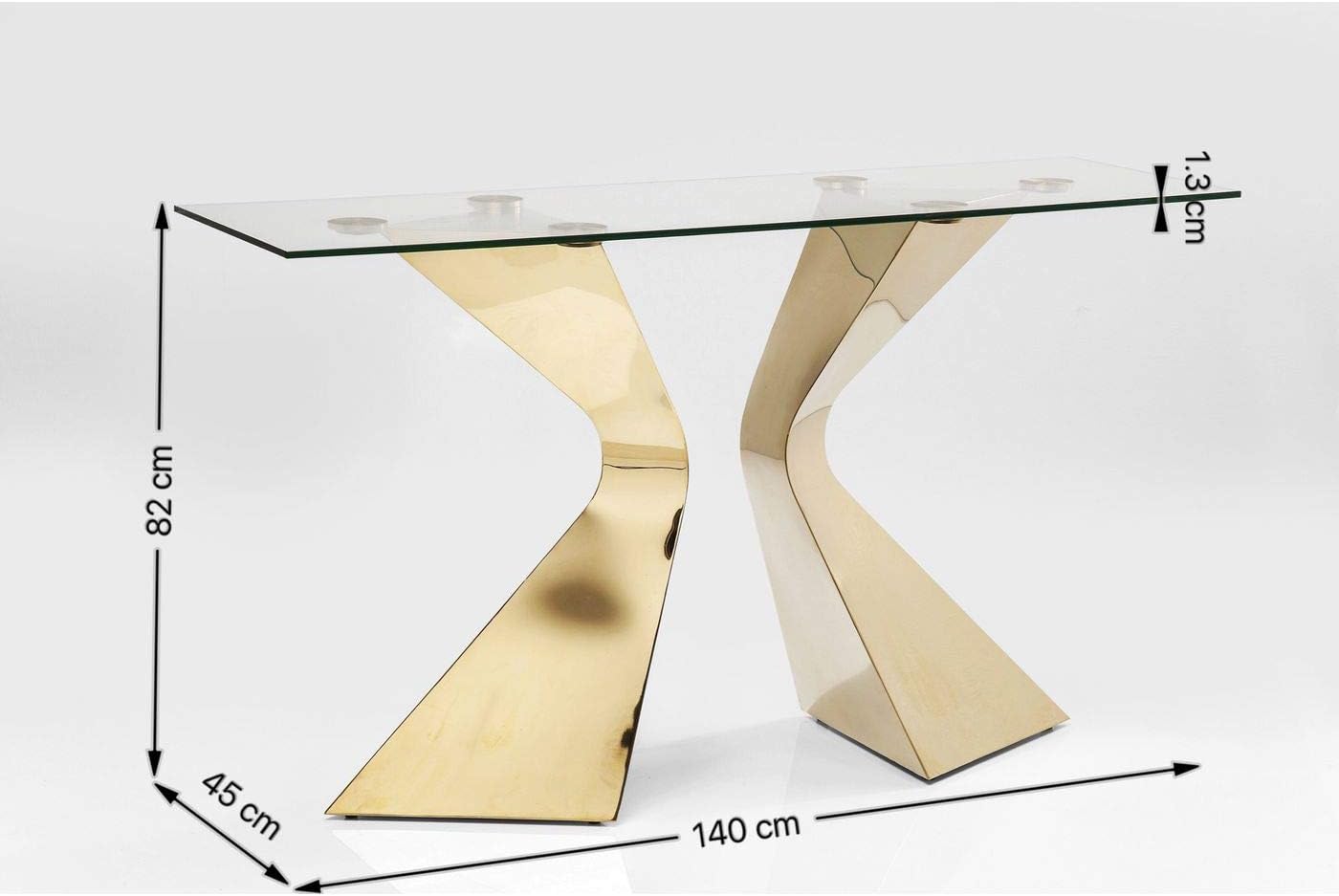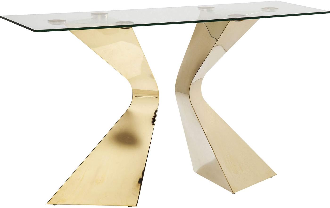 Kare Gloria Design Console Table Sculptural Frame Glass Top Gold 82 x 140 x 45 cm (H x W x D)