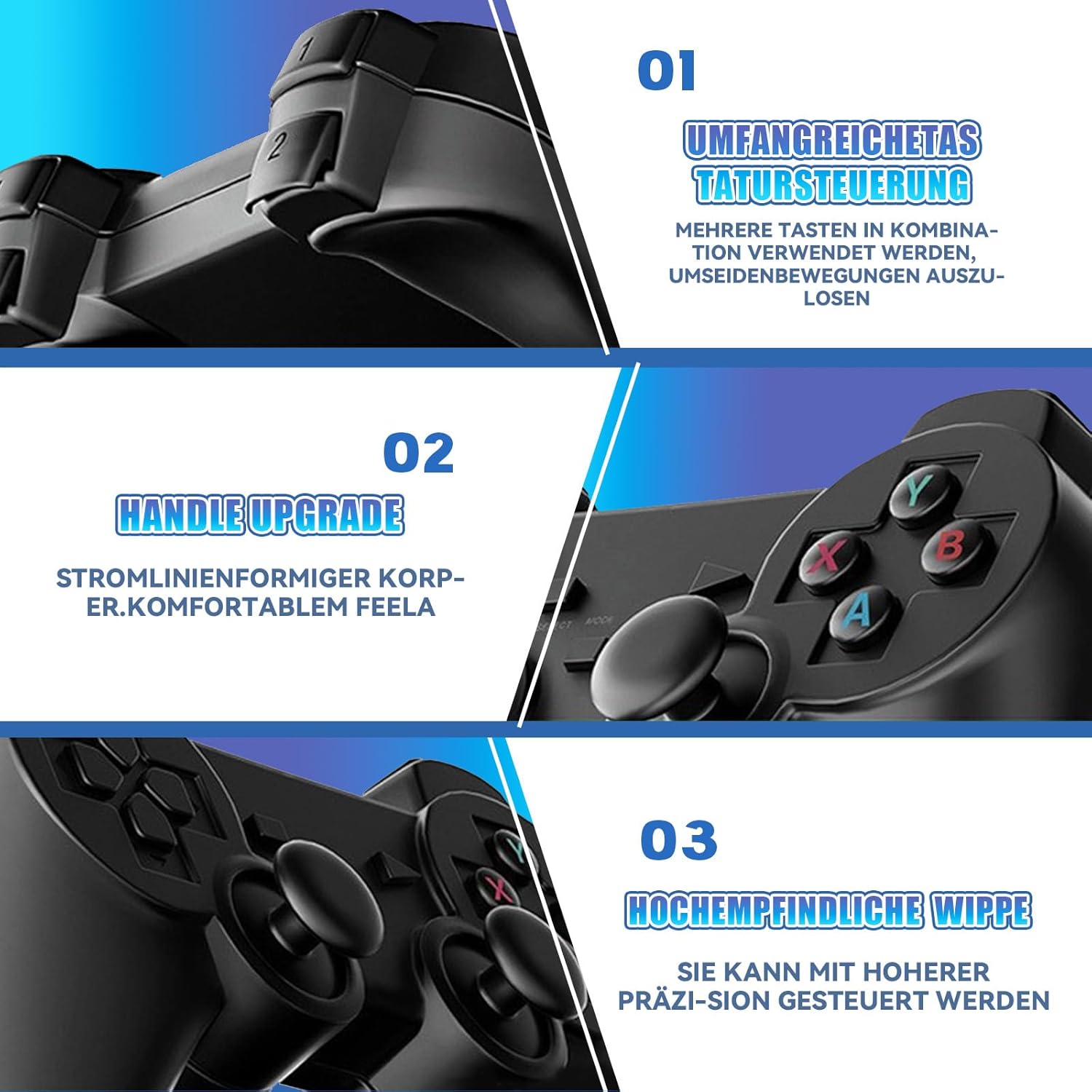 Mit 2 stabilen kabellosen Controllern: Die Emulatorkonsole ist mit 2 kabellosen Controllern ausgestattet, die über eine hervorragende Konnektivität, ein stabiles Signal innerhalb von 8 Metern und nahezu keine Latenz verfügen. Ob bei einem Familientreffen oder einem Multiplayer-Spiel mit einer Gruppe von Freunden, die Handheld-Konsole lässt sich präzise bedienen und reagiert zeitnah, sodass Sie eine reibungslose Steuerung im Spiel genießen können, ohne sich Gedanken über Signalprobleme machen zu müssen, die das Spielerlebnis beeinträchtigen könnten