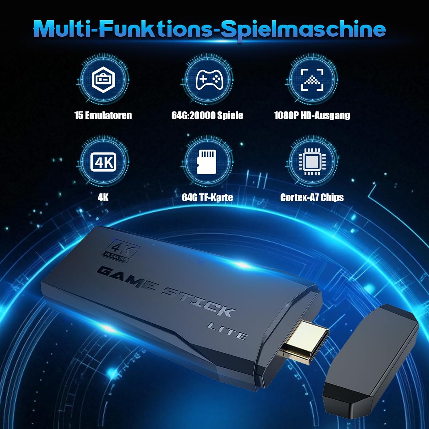 Umfangreiche Spielebibliothek mit über 20.000 Spielen: Der M8 Retro-Stick verfügt über eine große Speicherkapazität von 64 GB, um einen reibungslosen Spielebetrieb zu gewährleisten. Da über 20.000 Spiele vorinstalliert sind, müssen diese nicht heruntergeladen oder installiert werden, um den unterschiedlichen Vorlieben der Spieler gerecht zu werden. Unterstützt 15 Emulatoren für eine Vielzahl von Spielstilen. Unterstützt den Mehrspielermodus, ideal für Familienfeiern, Freunde und Geburtstagsfeiern. Genießen Sie das Spiel auf der Couch mit Ihrer Familie oder Freunden