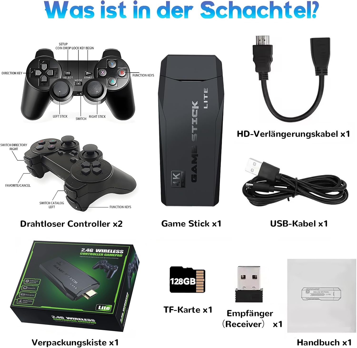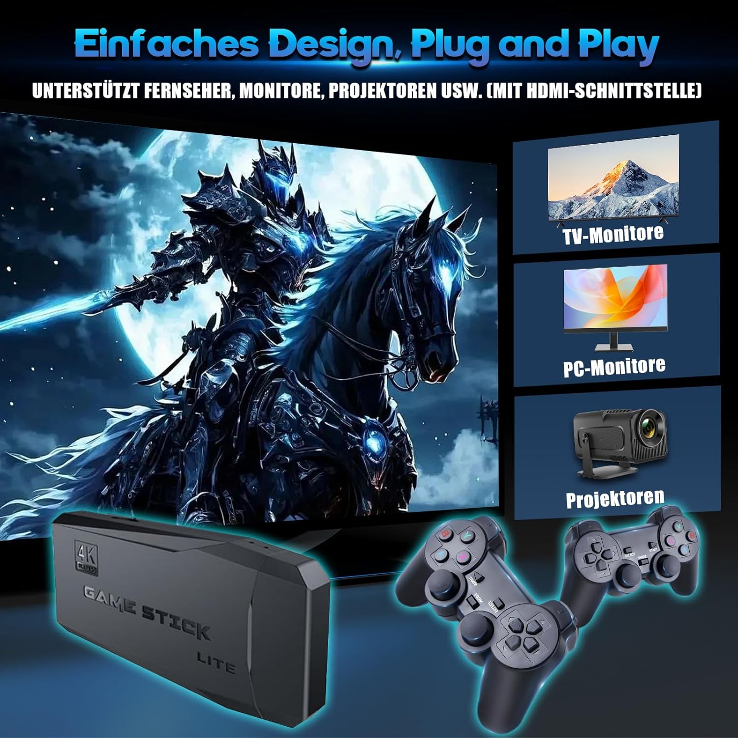 HDMI-Ausgang und Plug-and-Play: Die Retro-Videospielkonsole verfügt über eine beeindruckende Anschlusskompatibilität und unterstützt die HDTV-Videoausgabe. Schließen Sie die Konsole einfach an den HDMI4K-HD-Ausgang an, der mit einer Vielzahl von Geräten wie Fernsehern, Computern, Laptops und Projektoren kompatibel ist. Ob im Wohnzimmer, Arbeitszimmer oder im Freien – Sie können die Retro-Konsole bequem an Ihre Lieblingsgeräte anschließen und das atemberaubende visuelle Vergnügen des Spielens auf dem großen Bildschirm genießen, wodurch die Spielszene erheblich erweitert wird