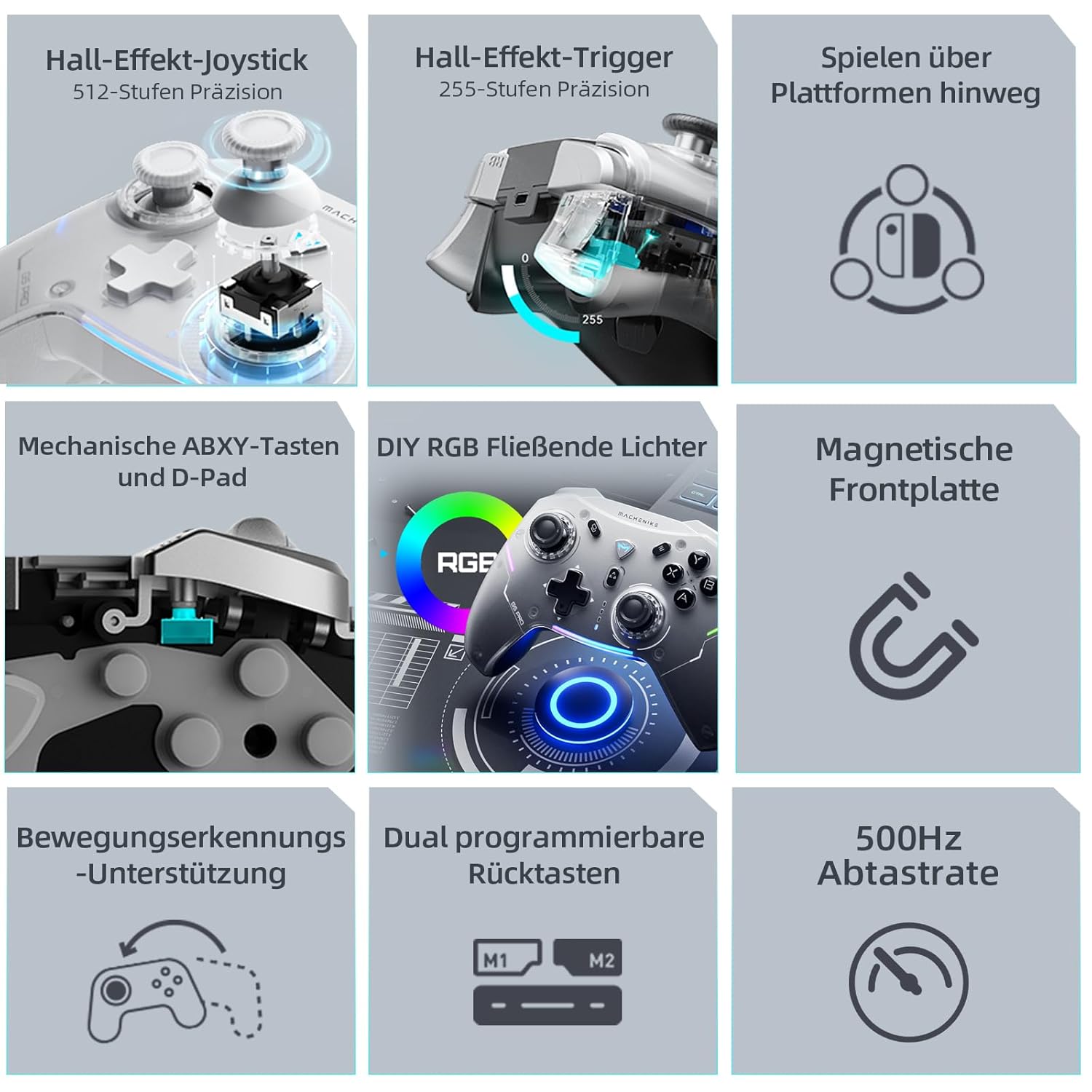 Gaming Consoles & Controllers – Machenike G5 Pro Wireless Controller für Windows PC/Switch/IOS/Android, RGB Lichter, PC Controller Hall Effekt Joystick&Trigger, Gyroskop, (Weiß)