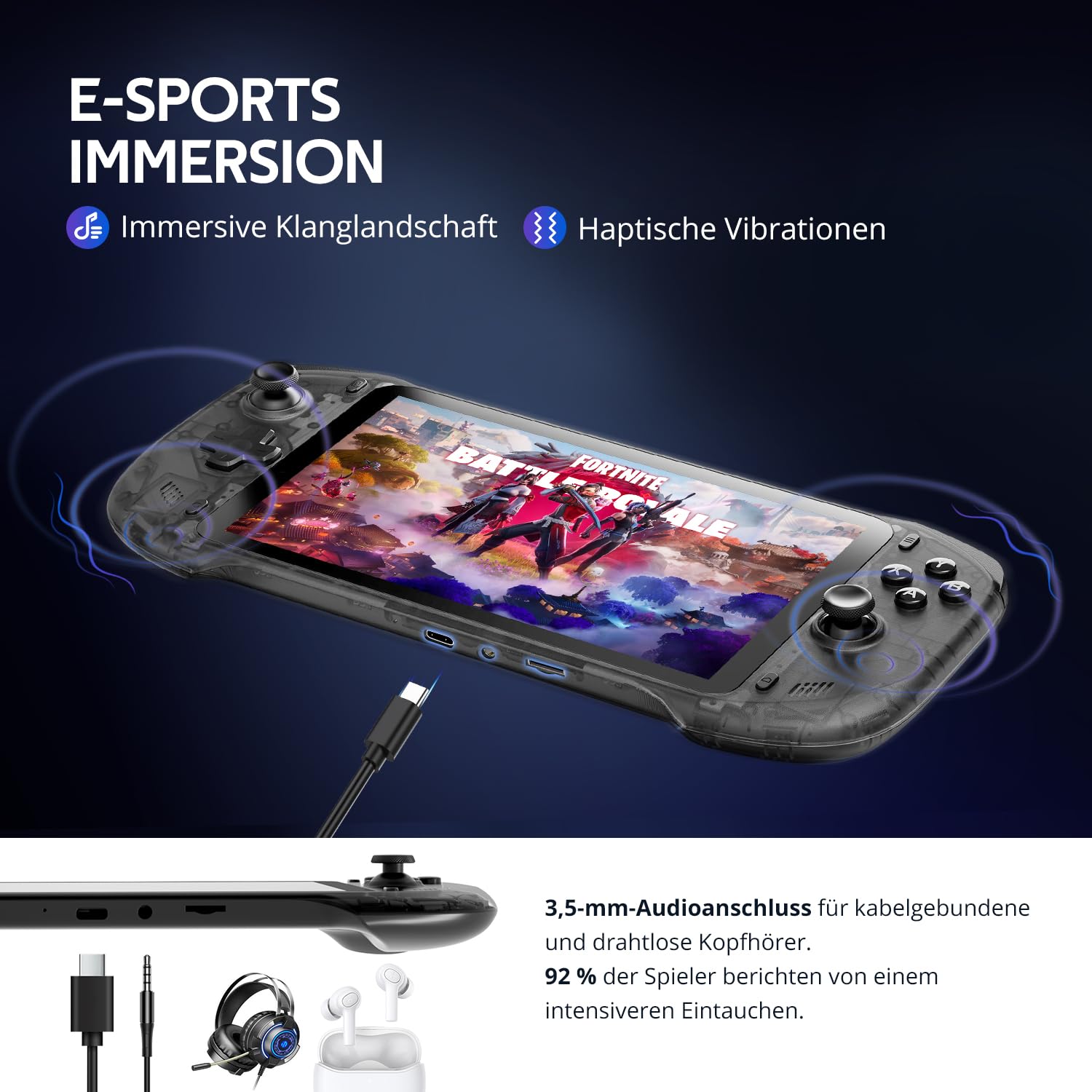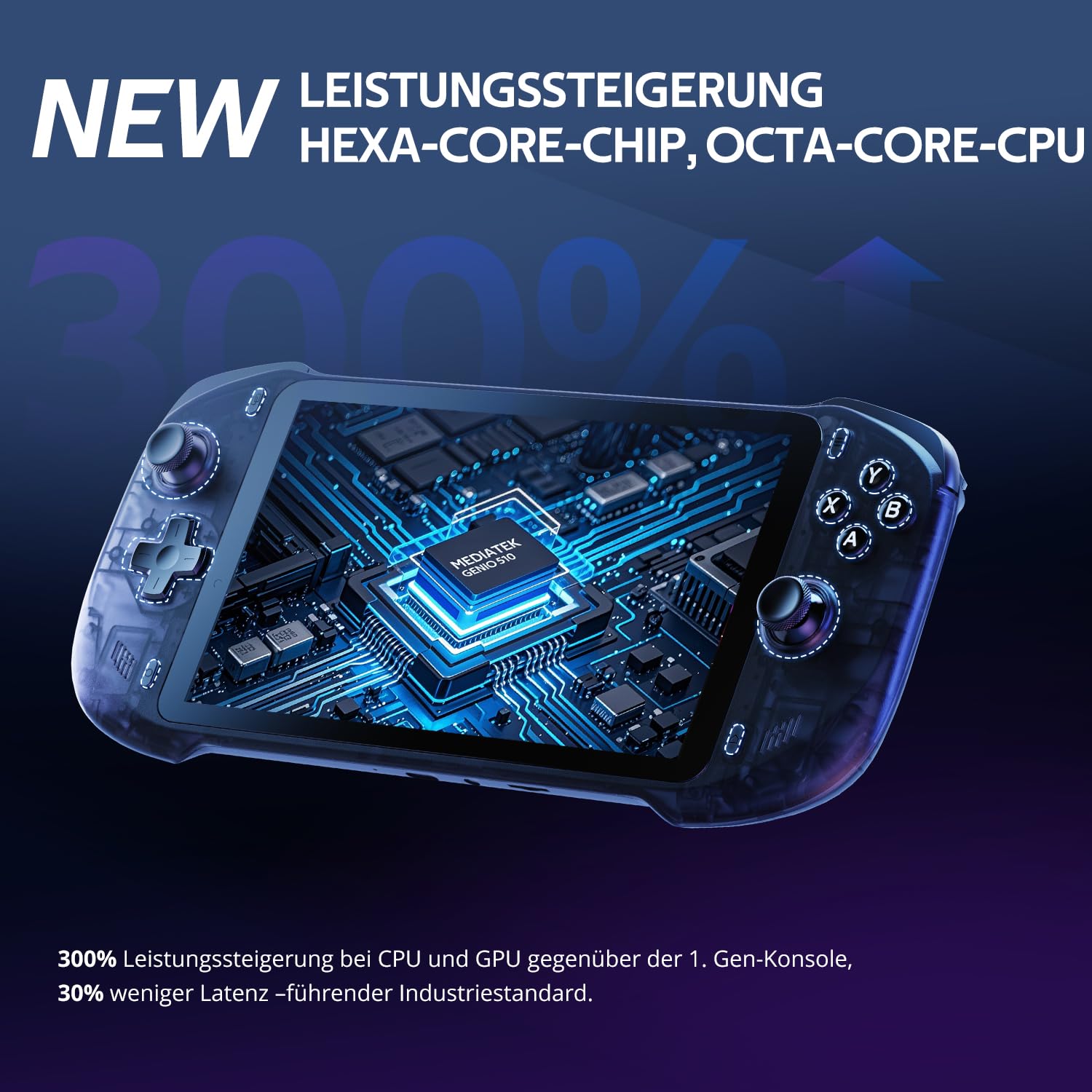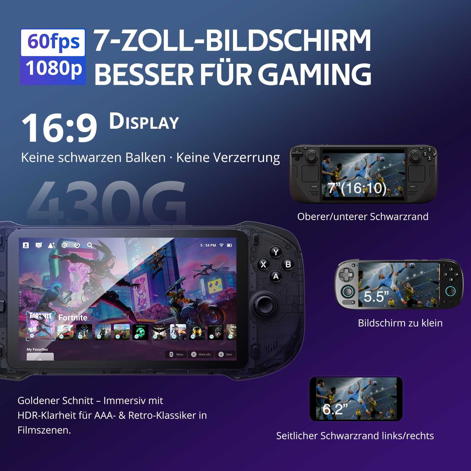 All-in-One-Handheld: das ultimative tragbare Konsolenerlebnis für unterwegs. Genießen Sie Retro-Spiele, Remote Play, Cloud-Gaming und Android-Titel auf einem leichten Handheld mit präziser Steuerung und einem atemberaubenden 7-Zoll-Display. Es ist mehr als nur eine Spielekonsole, es ist ein leistungsstarkes All-in-One-Unterhaltungsgerät.