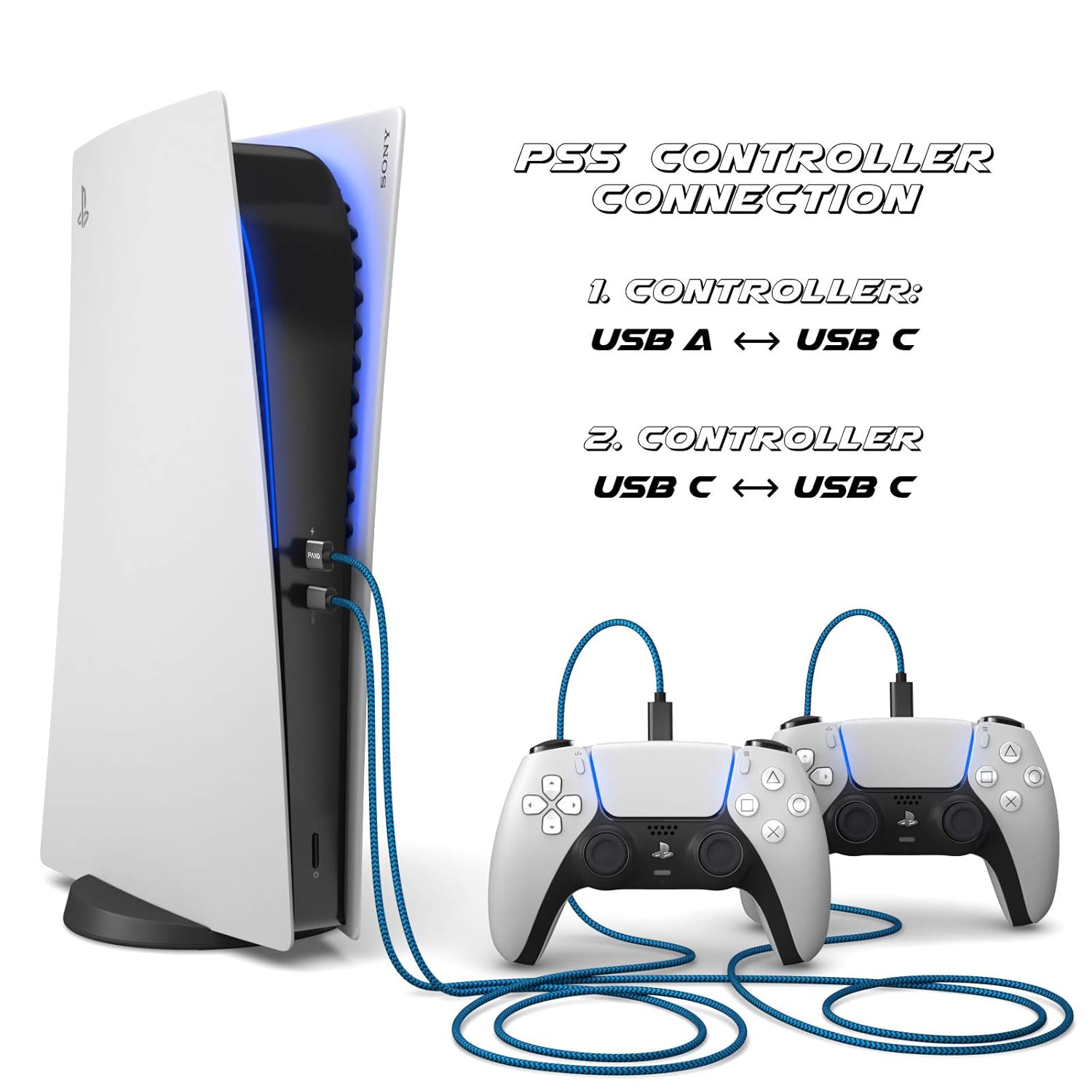 Paxo PS5-Ladekabel in Blau/Schwarz