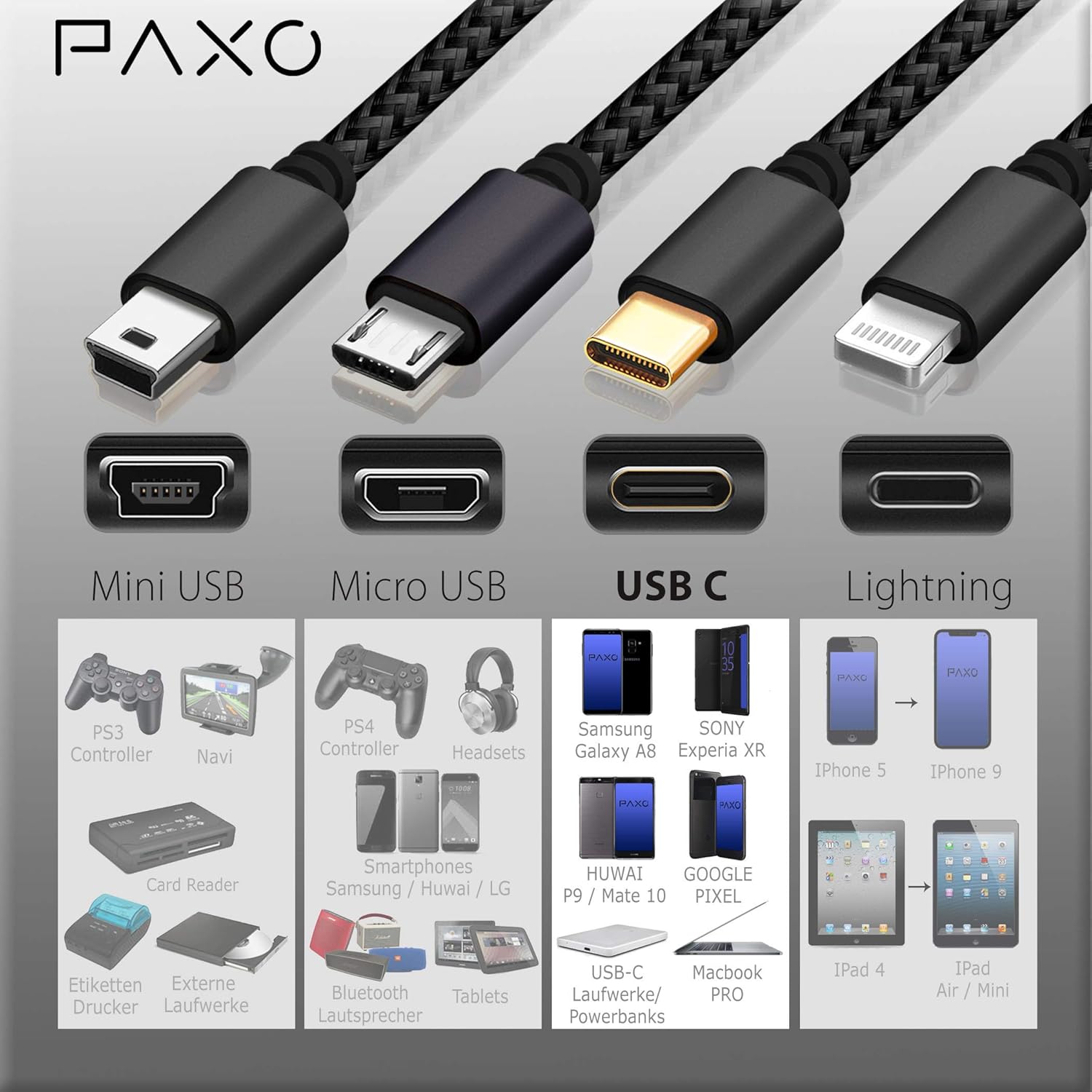 Marke PAXO USB-Standard 3.1 (3.0) Länge 3 m Farbe Blau-Schwarz USB-Laderichtung USB-A auf USB-C