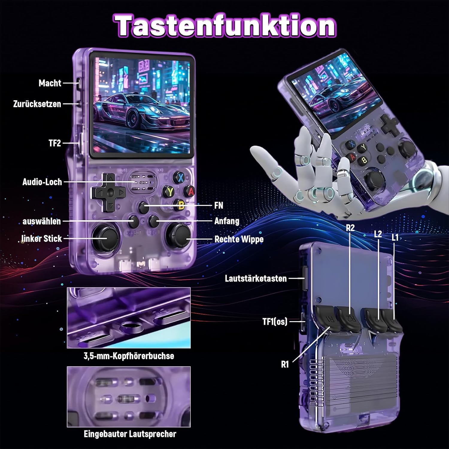 Systemeinschränkung: Dieser Gaming-Handheld mit vorinstallierten Spielen unterstützt keine vom Benutzer initiierten Systemänderungen, Updates oder Aktualisierungen. Bei Problemen (z. B. Spielverzögerungen, Verbindungsproblemen) wenden Sie sich bitte umgehend an unser Support-Team – wir werden diese so schnell wie möglich beheben.