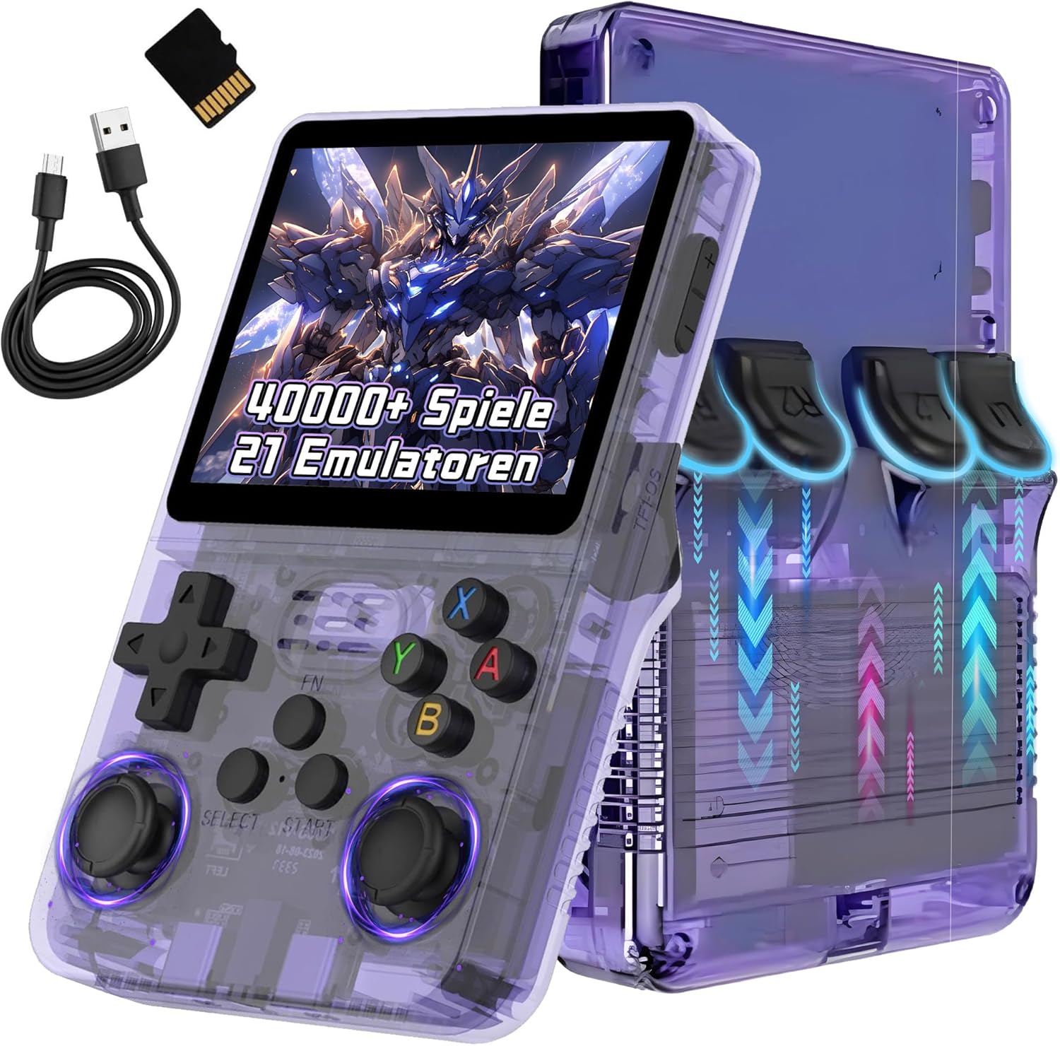 R36S Retro Handheld Game Console for Travel, 40,000+ Games Retro Console, 21 Emulators, ARKOS Open Source Linux System, 3.5 Inch IPS Screen 640 x 480P, 3500 mAh (Transparent Purple)