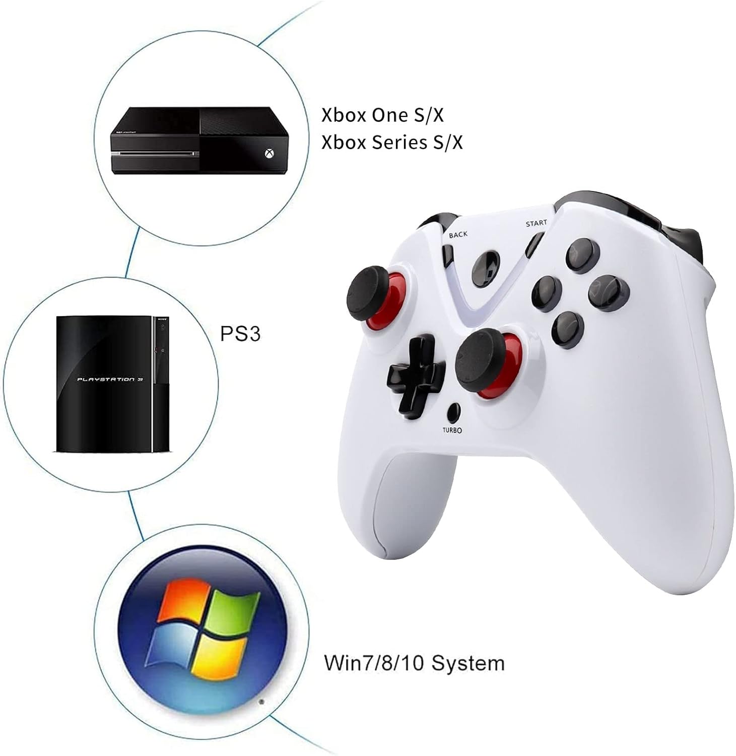 RALAN Wireless Game Controller with LED Lighting, Compatible with Xbox One S/X, Xbox Series S/X, PC Gaming Gamepad, Remote Control Joypad with 2.4G Wireless Adapter, Rechargeable Battery (White)