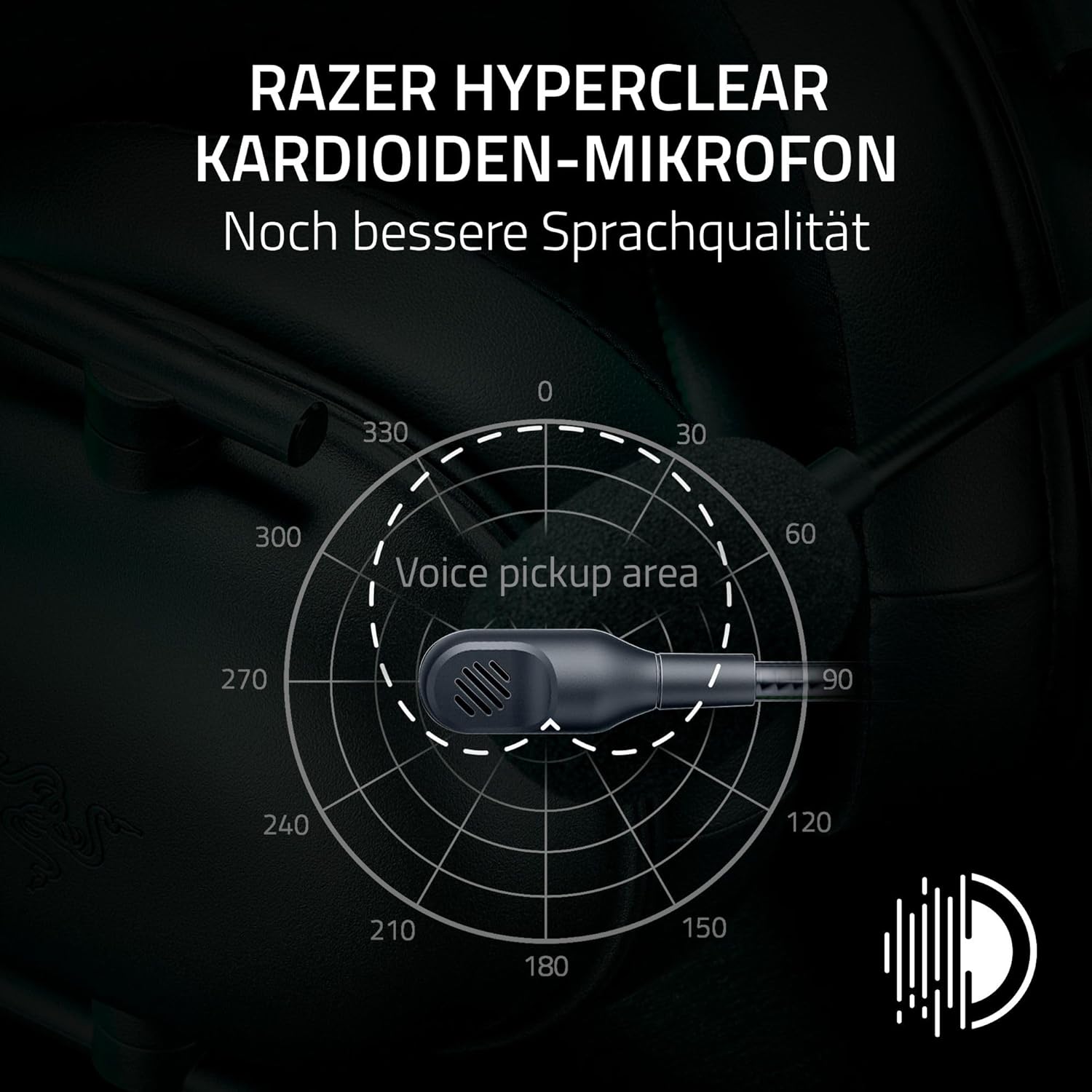 Razer HyperClear Nierenmikrofon – Noch bessere Sprachqualität: Verbesserte Richtcharakteristik erfasst die Stimme besser und unterdrückt Geräusche von hinten und von der Seite – Dank des flexiblen Designs des Mikrofons lässt es sich optimal vor dem Mund ausrichten.