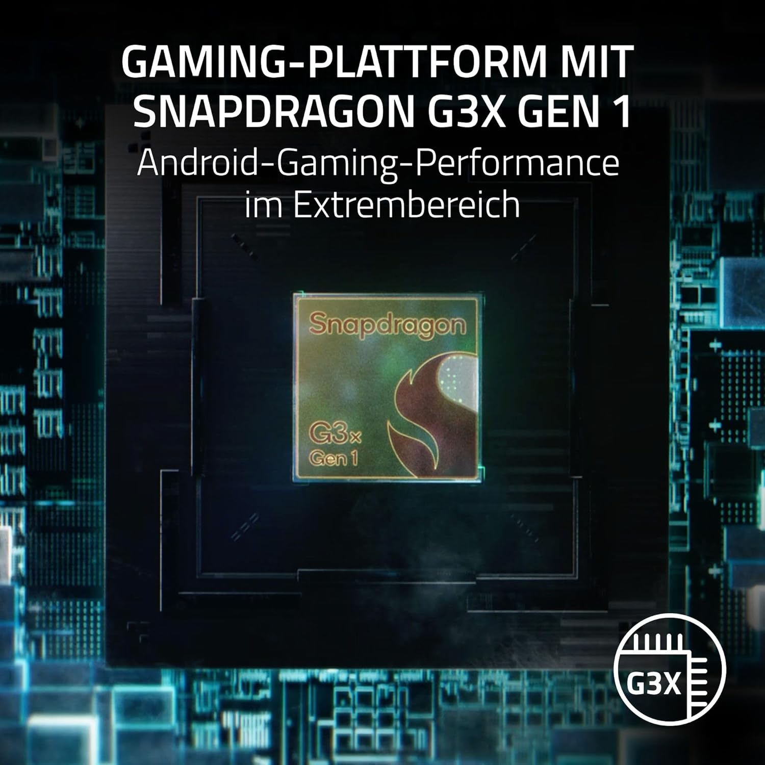 Gaming-Plattform mit Snapdragon G3X Gen 1 Android-Gaming-Leistung im Extrembereich: Das weltweit erste Gerät* mit der Leistung des Snapdragon G3x, einem aktiv gekühlten Gaming-Chipsatz mit einer Kryo-CPU getaktet [3 GHz] – so können Android-Spiele auch bei langen Sitzungen mit unglaublich hohen Bildraten genossen werden. *zum Zeitpunkt der Veröffentlichung