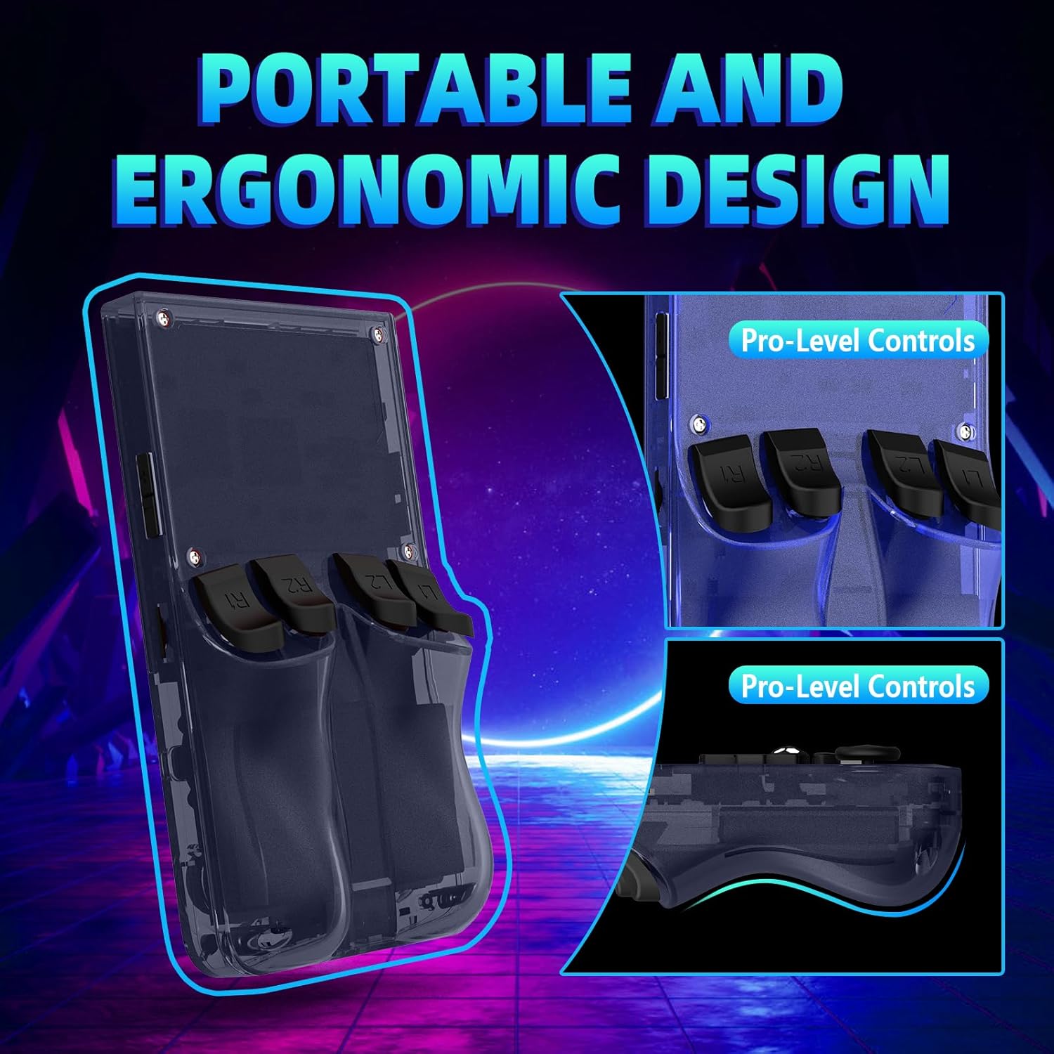 4,0-Zoll-IPS-Bildschirm: Diese Mini-Retro-Spielekonsole mit 4,0-Zoll-IPS-Bildschirm mit hoher Auflösung von 720 x 720 macht die Bildschirmdetails Ihrer Spielekonsole lebendiger. Inzwischen ist der R36 Max 2025 mit zwei Joysticks und vollständigem Tastenlayout, integrierten Lautsprechern und einer 3,5-mm-Kopfhörerbuchse für ein noch intensiveres Spielerlebnis ausgestattet