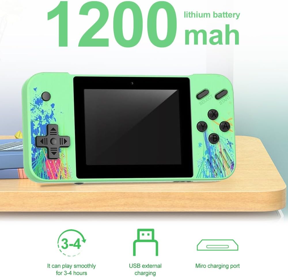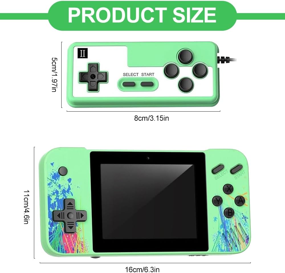 Tragbar und leicht zu transportieren: Die Retro-Handheld-Spielekonsole ist klein und leicht und passt problemlos in Ihre Tasche oder Ihren Rucksack, sodass sie perfekt zum Spielen unterwegs geeignet ist. Egal, ob Sie reisen, campen oder einfach zu Hause entspannen.
