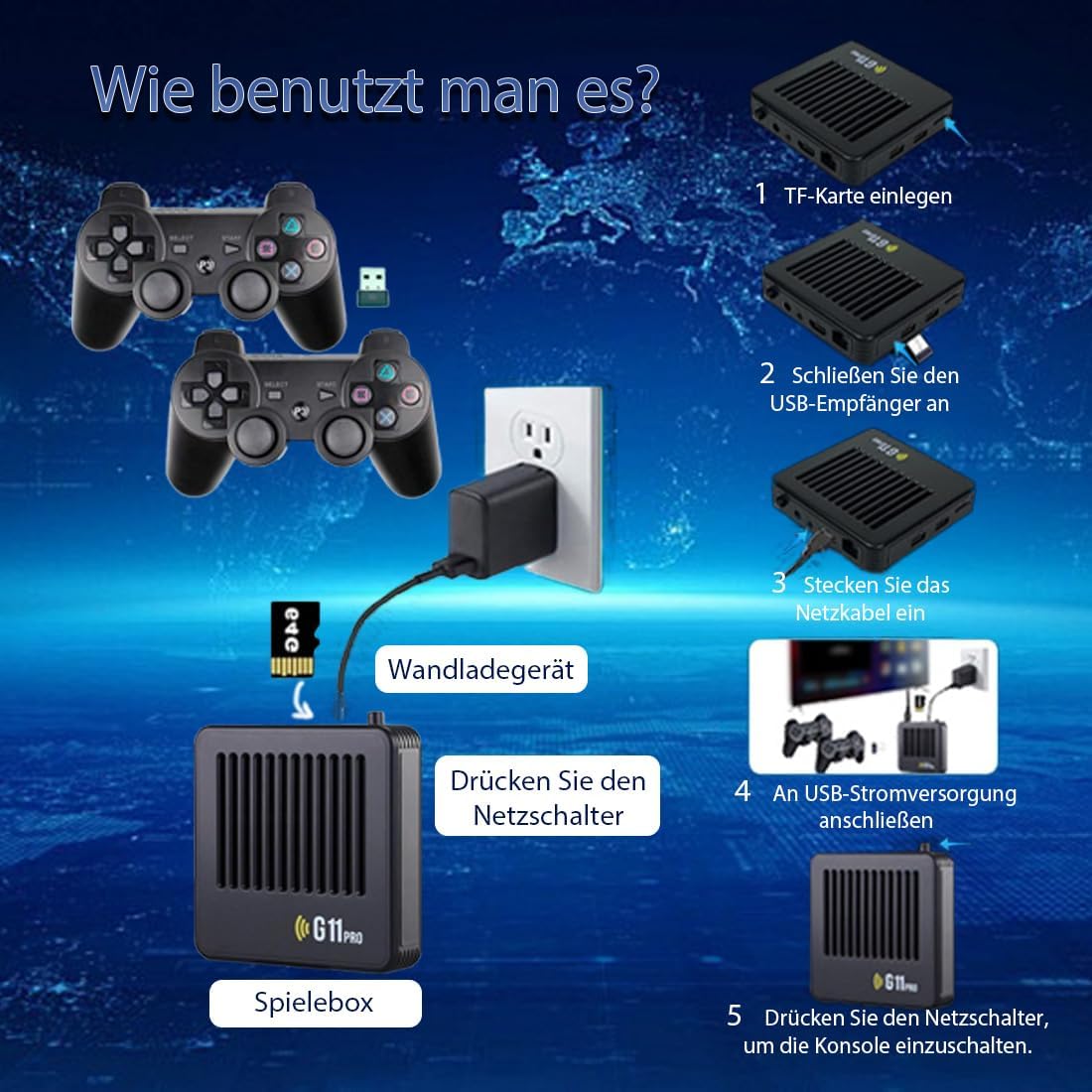 Plug-and-Play-Einrichtung: Keine komplizierte Installation. Schließen Sie die Retro-Konsole G11 Pro per HDMI direkt an Ihren Fernseher an und legen Sie sofort los – auch Einsteiger sind in Sekundenschnelle spielbereit