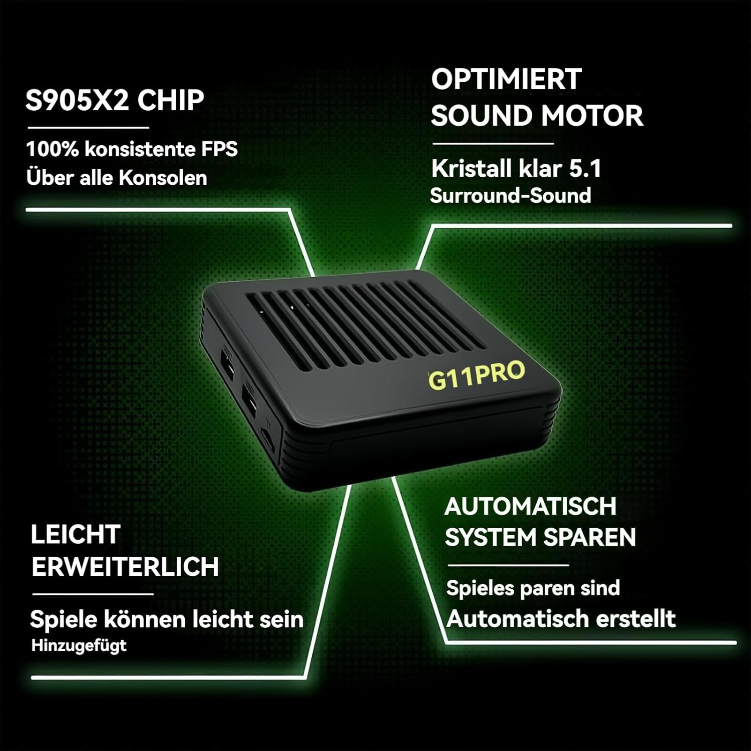 Hervorragendes Multiplayer-Erlebnis: Mit vier mitgelieferten Wireless-Controllern und stabiler Leistung verwandelt der Retrowave G11 Pro Ihr Wohnzimmer in eine Retro-Gaming-Arena. Genießen Sie verzögerungsfreien Spielspaß mit Freunden und Familie – ideal für gesellige Gaming-Abende.
