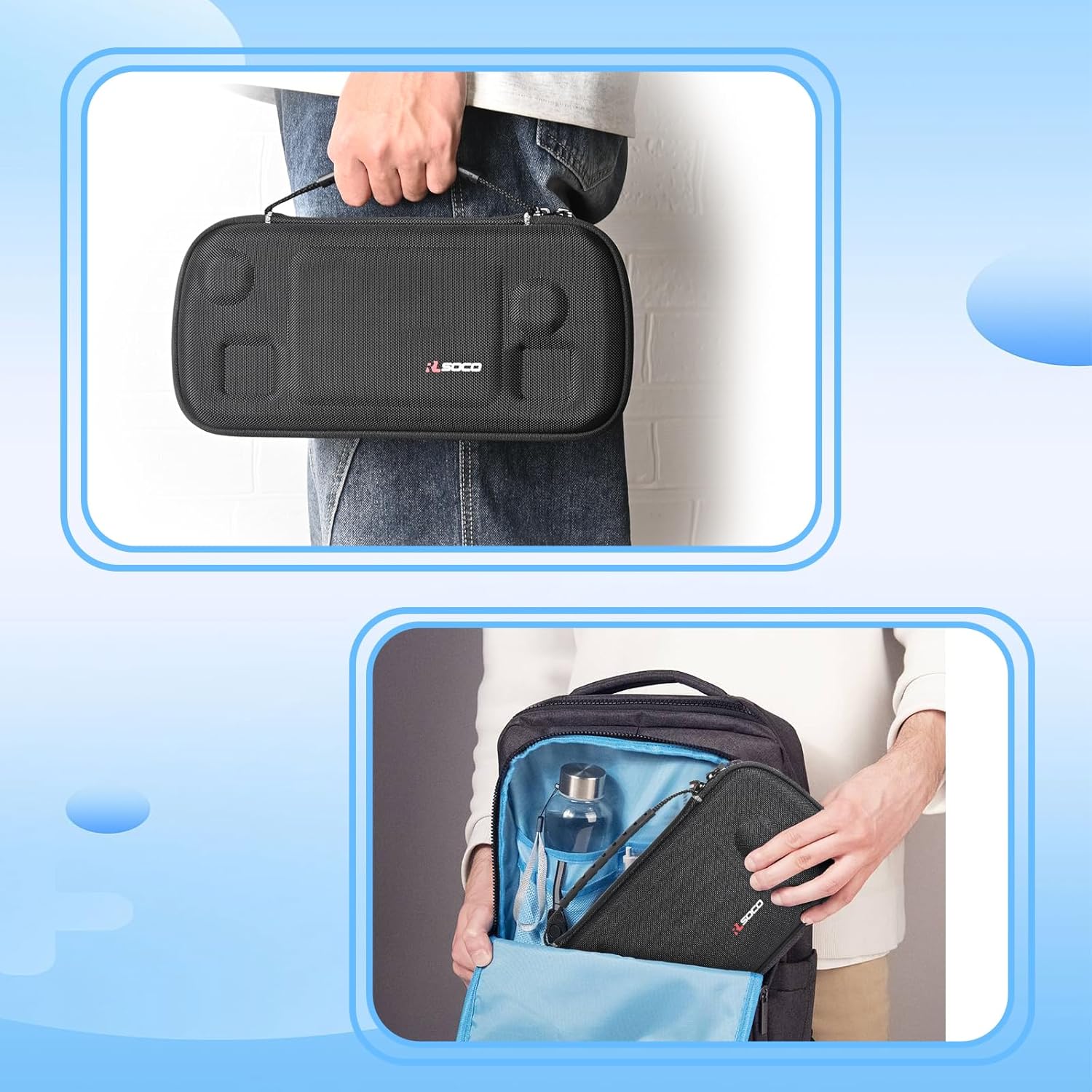 Kompaktes Design – Der zentrale Klebestreifen fixiert die Spielekonsole sicher, verhindert Bewegungen in der Tasche und ist für Handheld-Konsolen mit Silikon-Schutzhüllen geeignet.