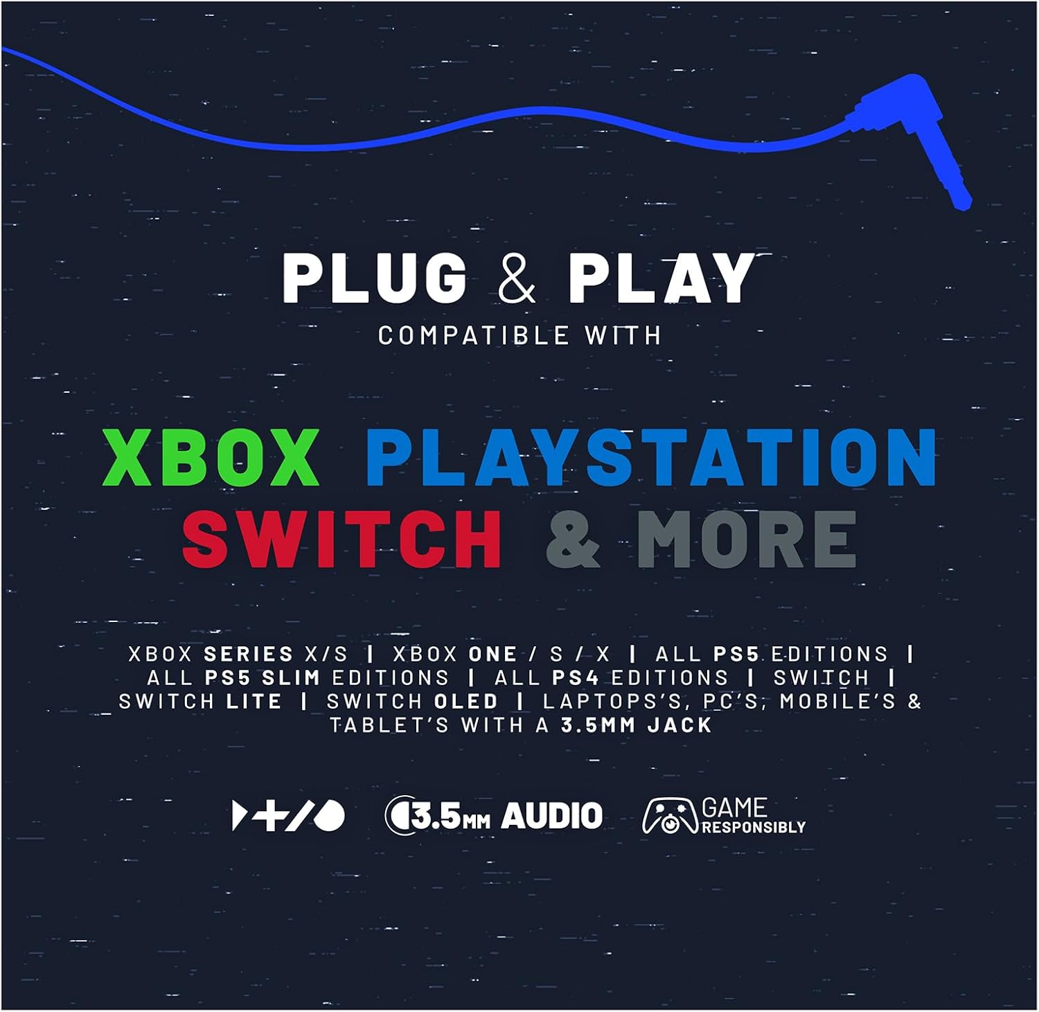 Multiplattform-kompatibel: perfekt für alle Plattformen. Kompatibel mit Xbox One*, Xbox Series X/S, PS4, PS5, Nintendo Switch, PC**, Mobiltelefon und Tablet über 3,5-mm-Buchse.