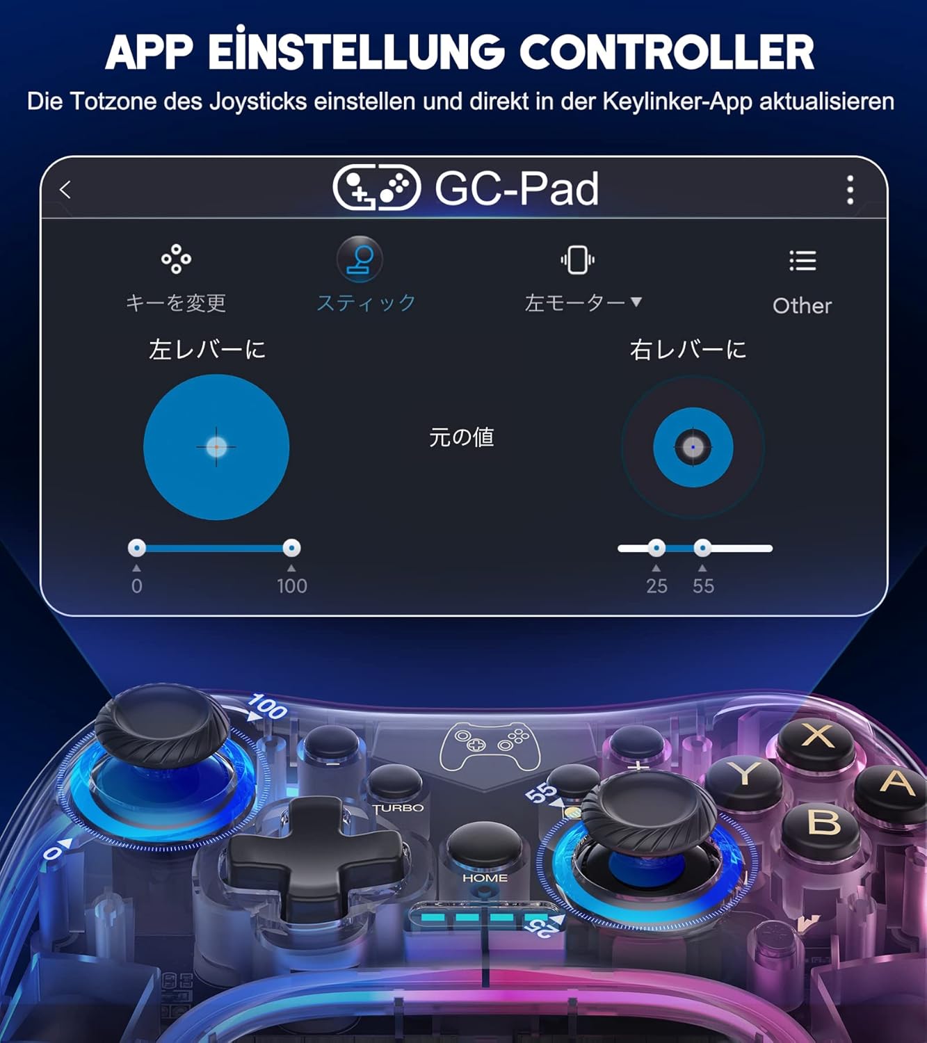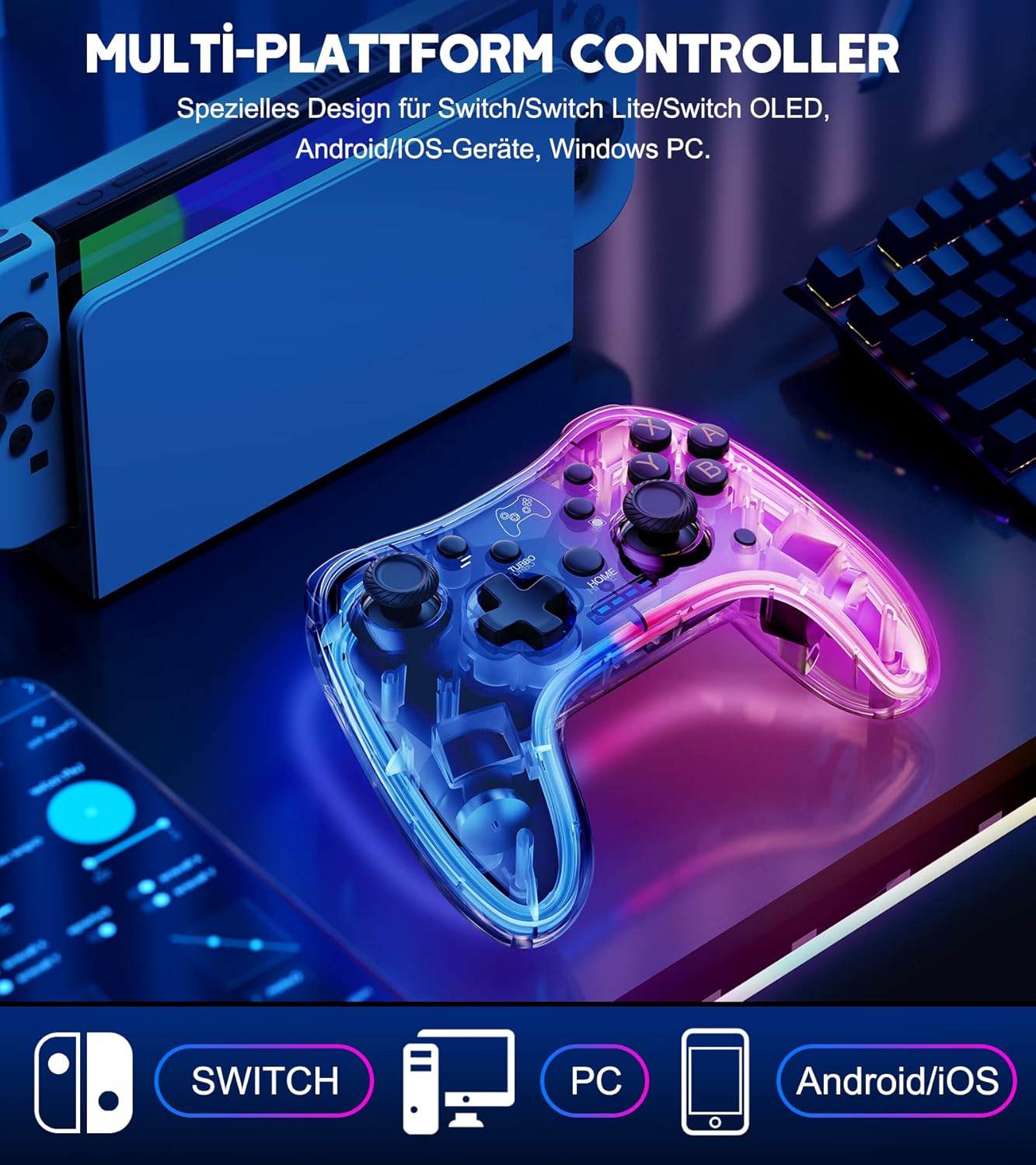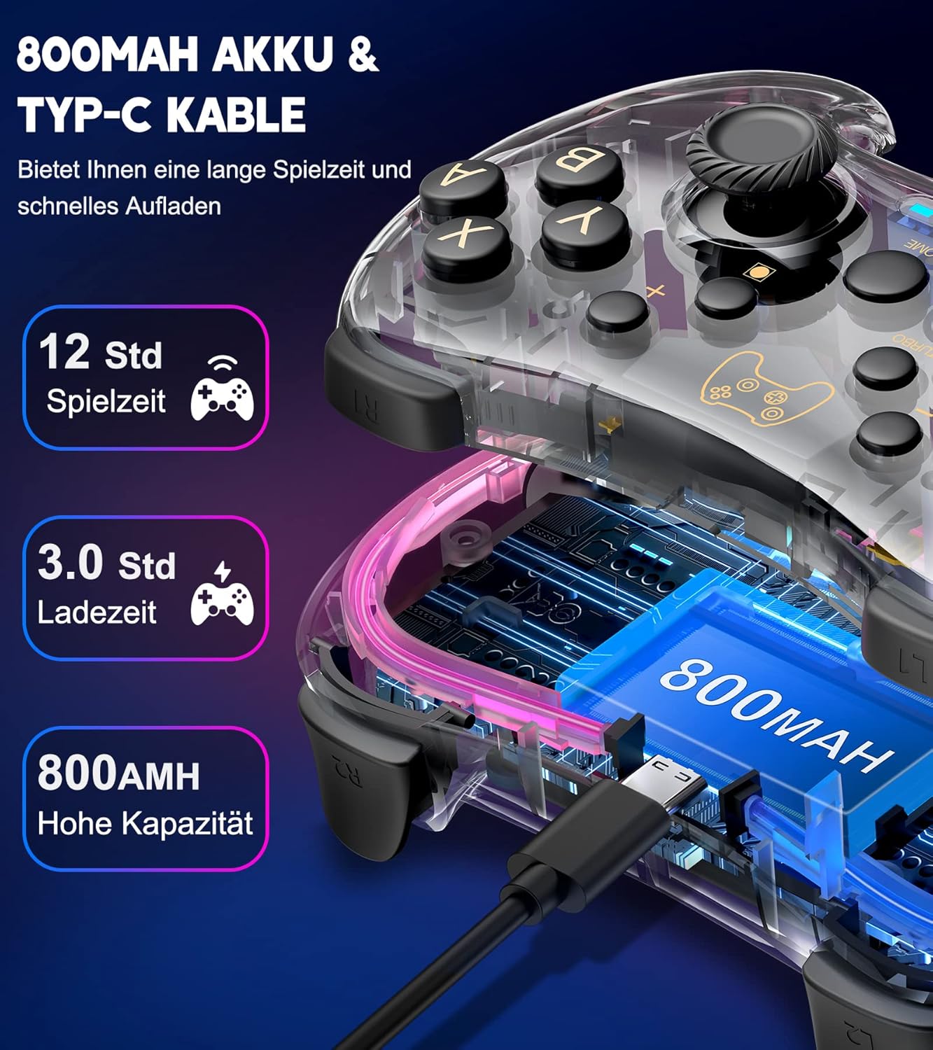 Switch Controller with Cool RGB Light Look/Wake/Turbo Function/Precise Joystick/Dual Motors Vibrations