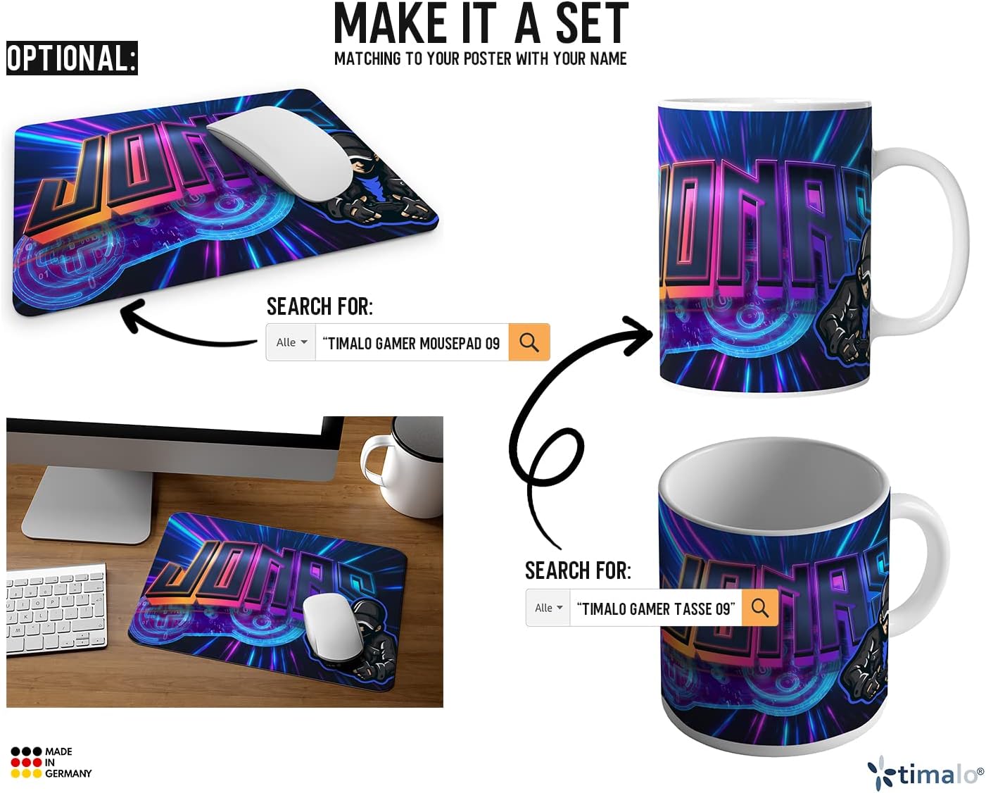 timalo® Individual Gamer Mouse Mat with Name Printed | Mouse Mat Gaming Image Console Neon | Mousepad-g-09