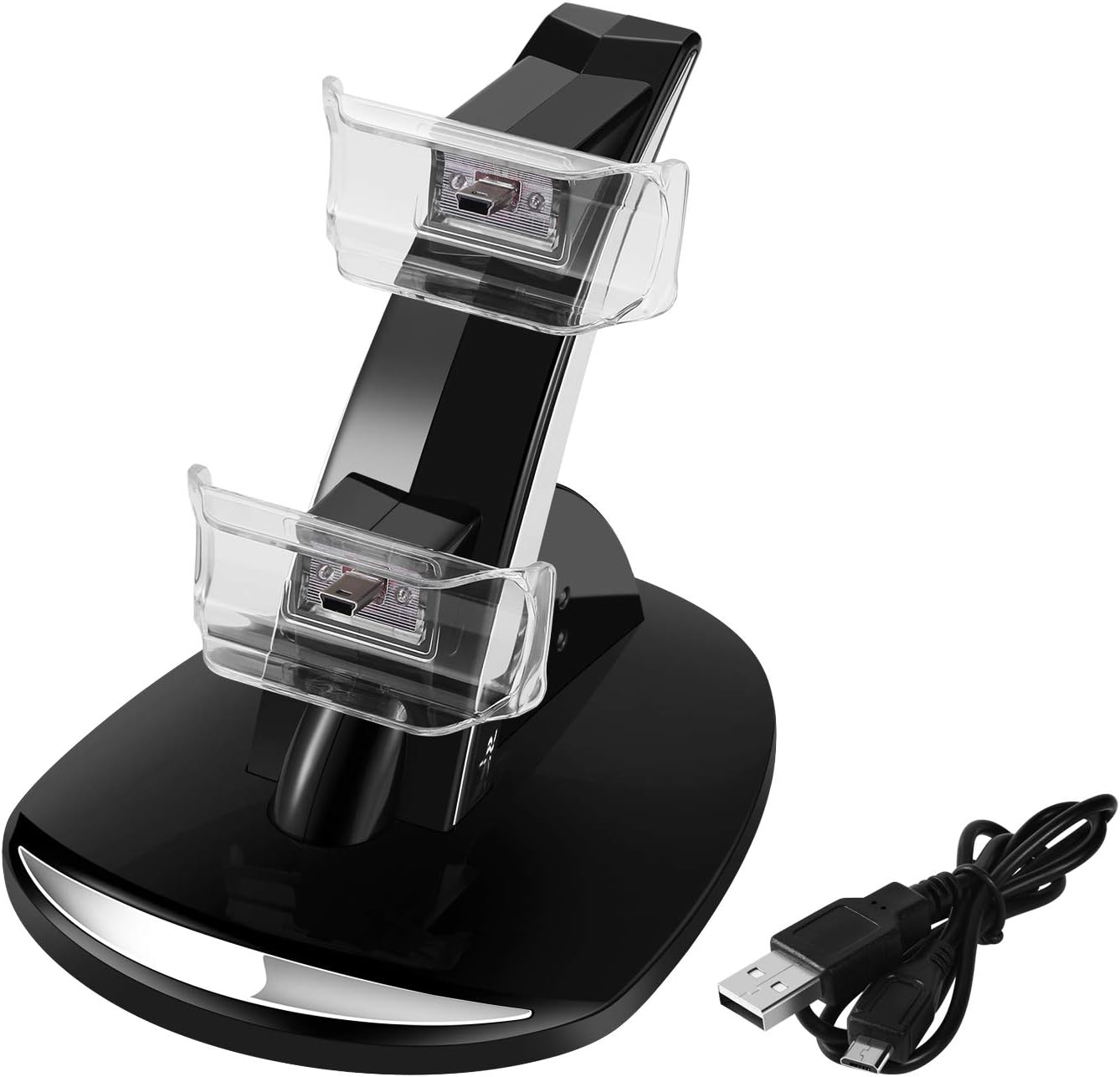 Vielseitige PS3-Ladestation – Stecken Sie den PS3-Controller bei Nichtgebrauch einfach in die beiden separaten Fächer, für ein schwebendes Display von oben nach unten. Das USB-Ladekabel kann zum weiteren Aufladen beim Spielen an die beiden seitlichen Anschlüsse des Docks angeschlossen werden