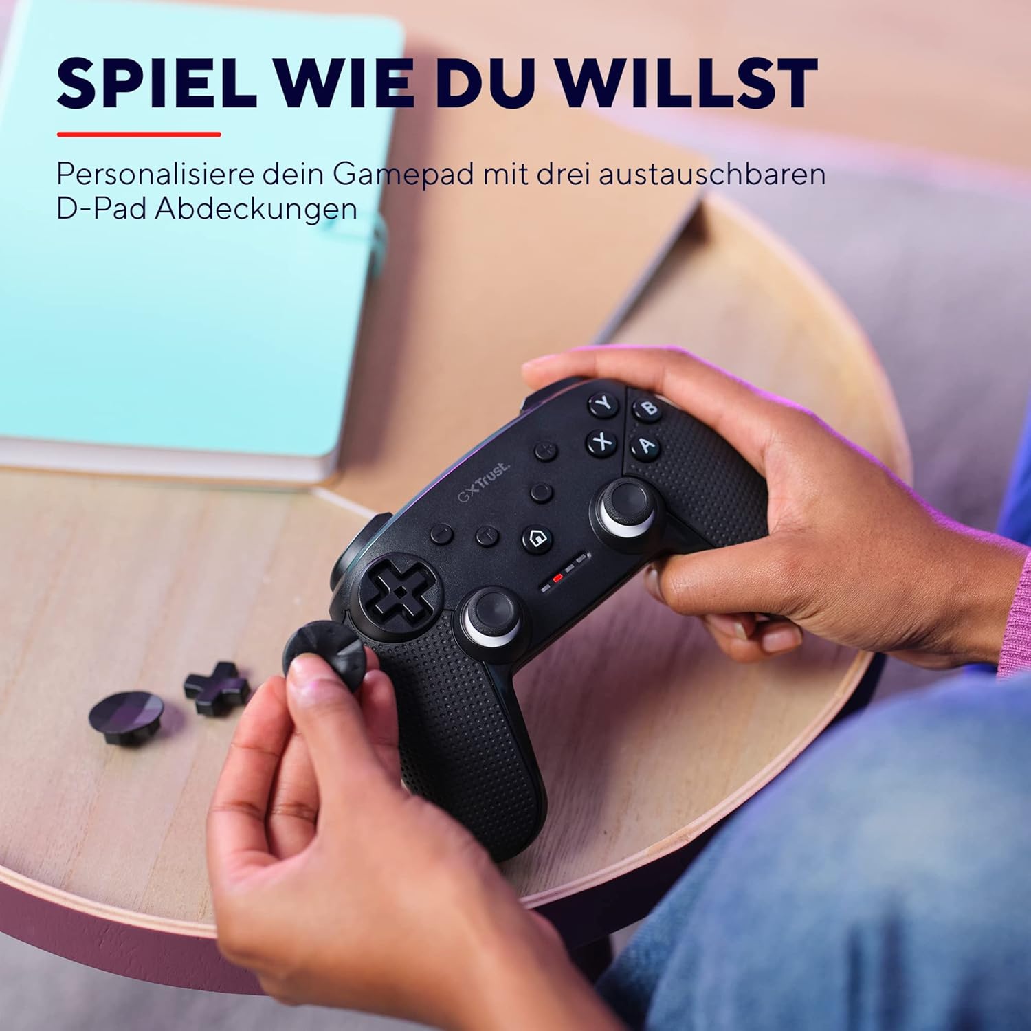 Wie es Dir gefällt – Mit den beiden austauschbaren D-Pad-Kappen kannst Du Muta ganz nach Deinem Geschmack verändern und ganz nach Lust und Laune spielen