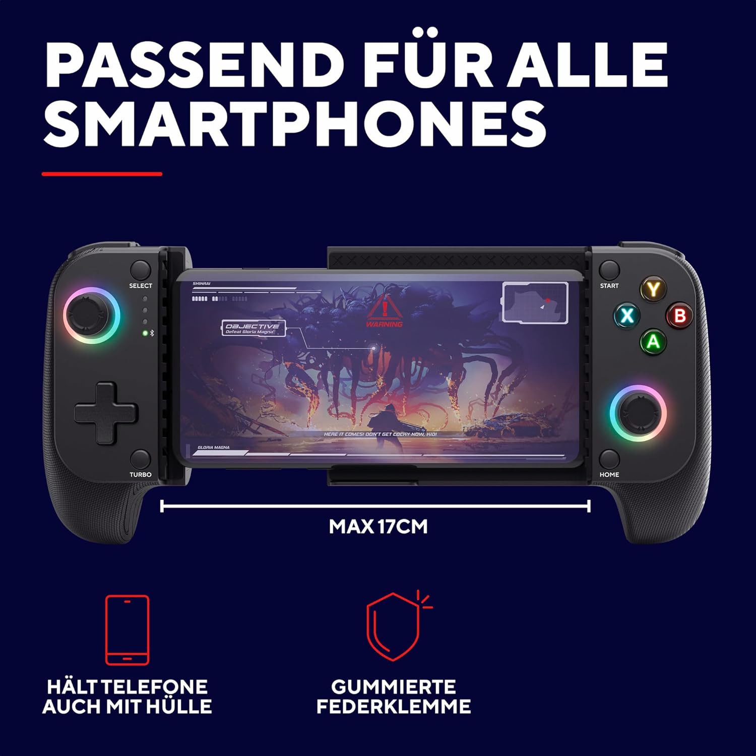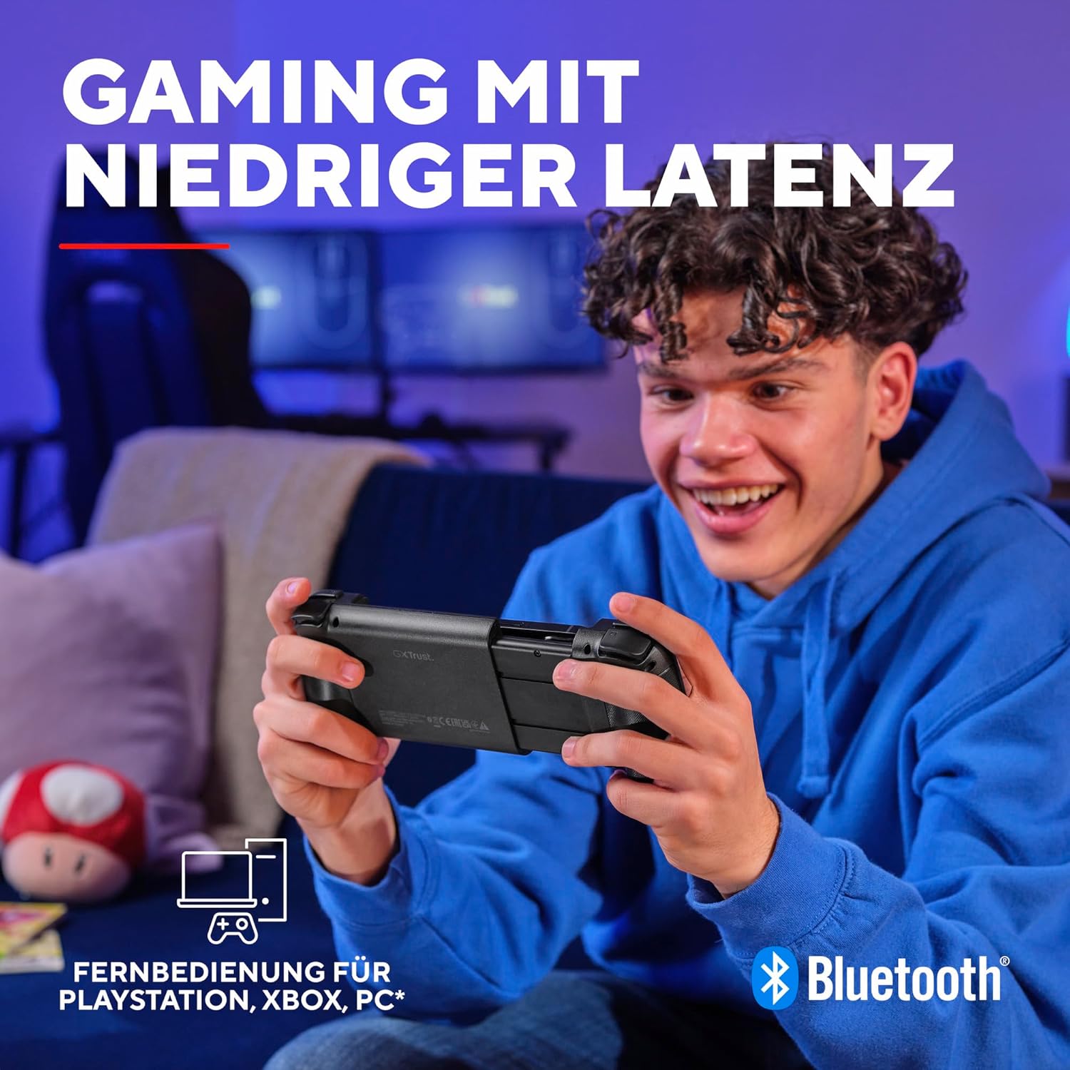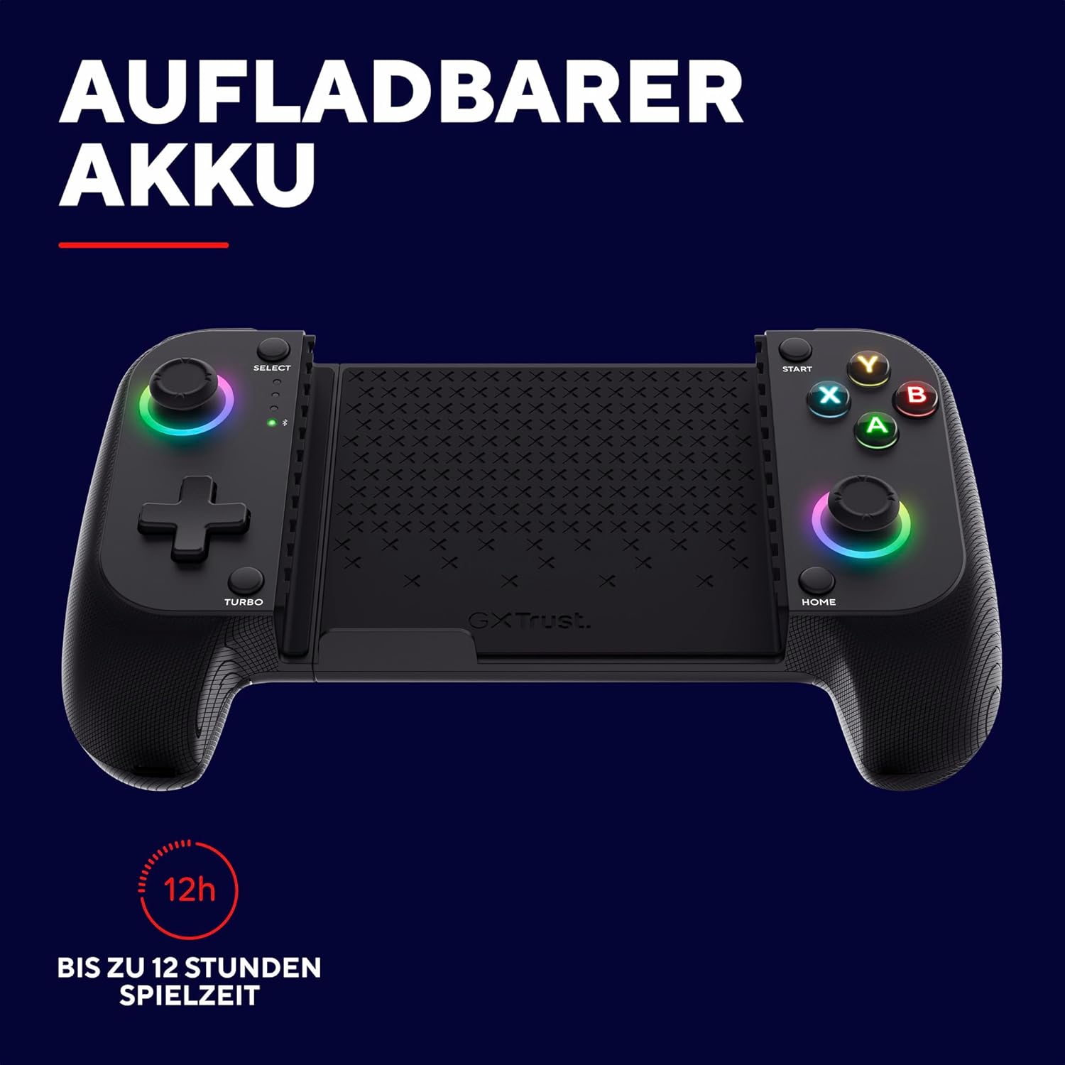 Trust Gaming GXT 735 Mylox Bluetooth Mobile Phone Controller for iPhone/Android/PS5/Xbox, 12 Hours Playtime, Dual Feedback Vibration, RGB Lighting, Handheld Wireless Gamepad, Mobile Gaming, Black