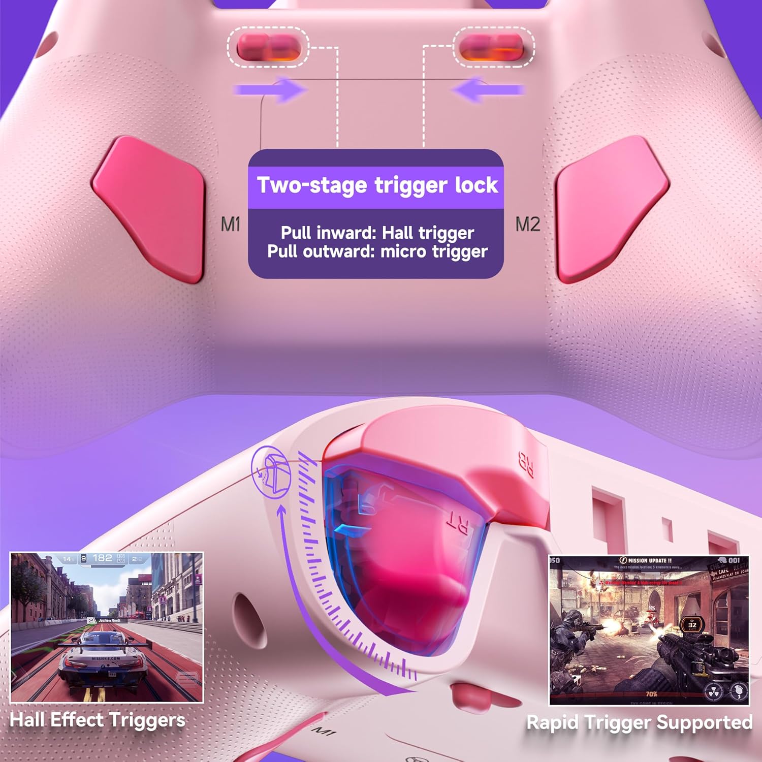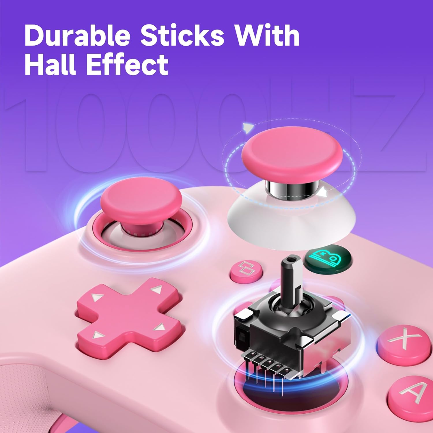 UHM Controller PC Wireless Gaming Controller mit PC Switch Handy iOS Android mit 2 in 1 Trigger & abnehmbare Hall Joystick & Mechanische Tasten, 6 Achsen Gyro Rosa