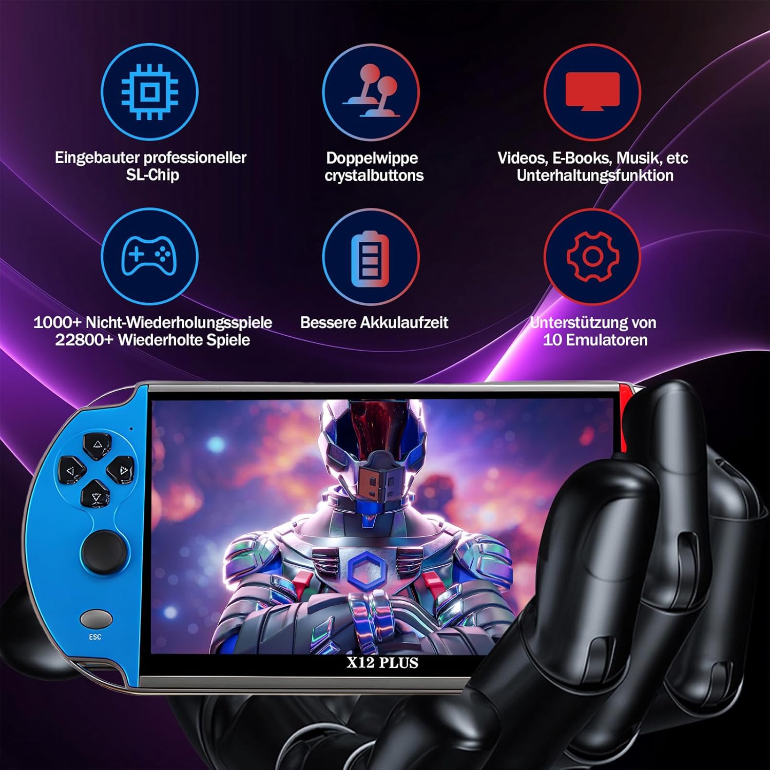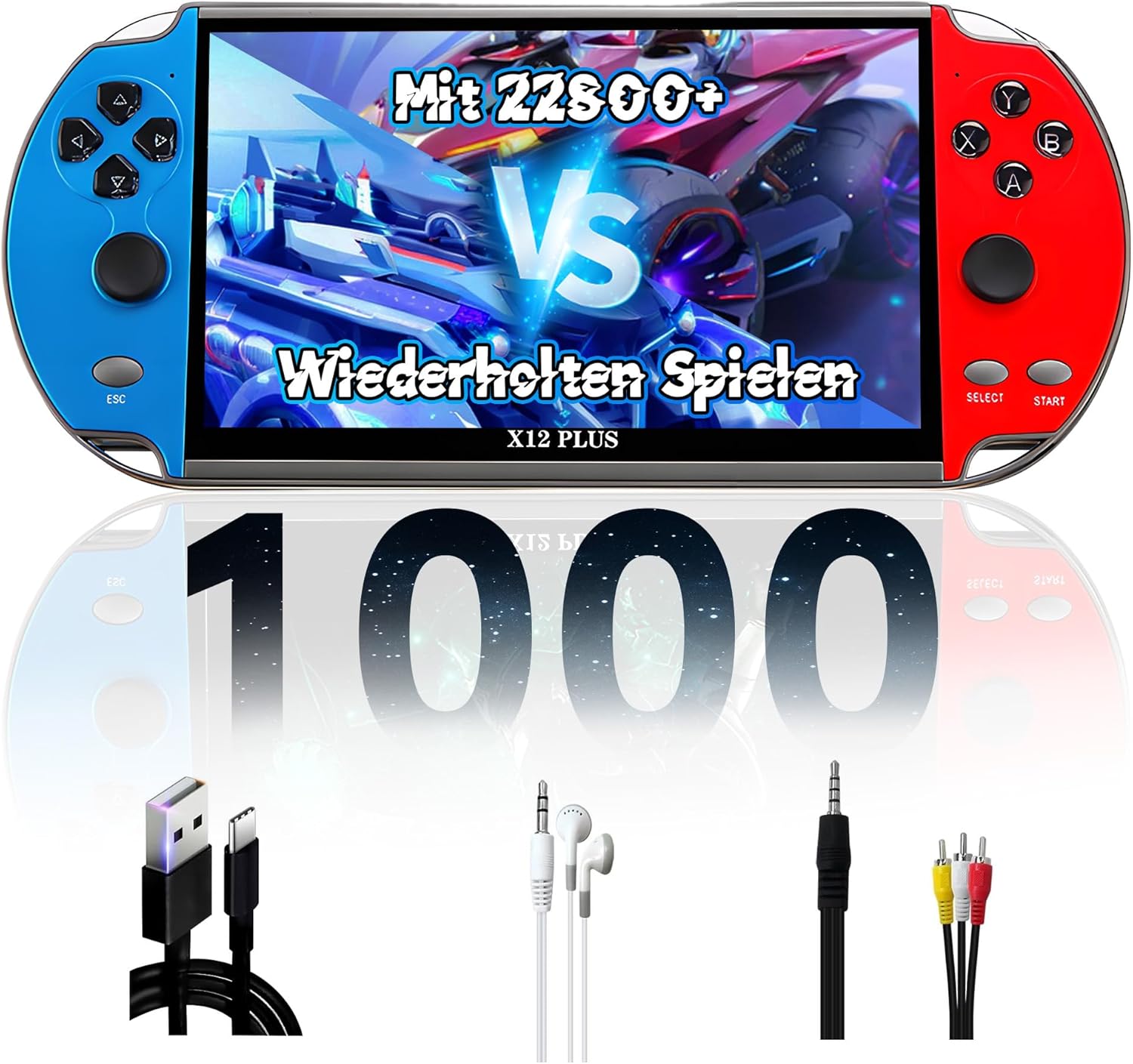 X12 Plus 7.1 Inch Retro Handheld Game Console, 1000+ Non-Repeating & 22800+ Repeating Games, 10 Emulators, Arcade Video Game Consoles with 800 x 480P HD Screen, TXT E-Books, AV/TV Output