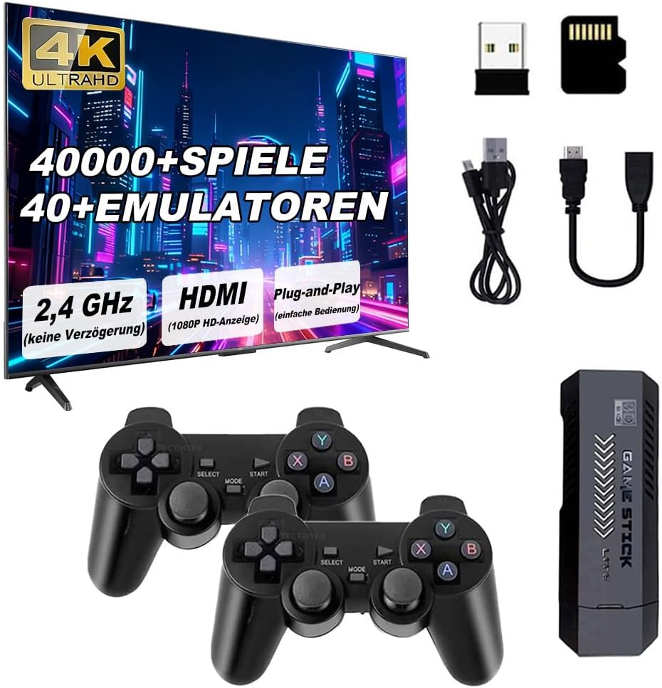 Über 40.000 Retro-Spiele: Eine 128-GB-TF-Karte enthält über 40.000 klassische Spiele von mehr als 40 Emulatoren. Zu den Funktionen gehören die Suche nach Spielen, eine Favoritenliste, das Speichern und Laden des Spielfortschritts sowie die Möglichkeit, jederzeit neue Spiele hinzuzufügen – perfekt, um nostalgische Erinnerungen wieder aufleben zu lassen.
