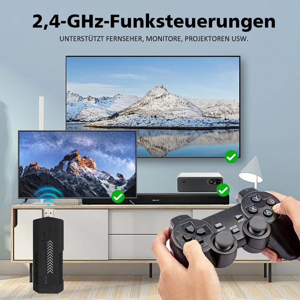 Dualer 2,4-GHz-Wireless-Controller: Ausgestattet mit zwei 2,4-GHz-Wireless-Controllern sorgt er für eine schnelle, stabile Verbindung nahezu ohne Verzögerung. Kein kompliziertes Pairing erforderlich – einfach anschließen und loslegen. Das ergonomische Design und der bequeme Griff machen sie ideal für Familienspaß oder freundschaftliche Wettbewerbe.