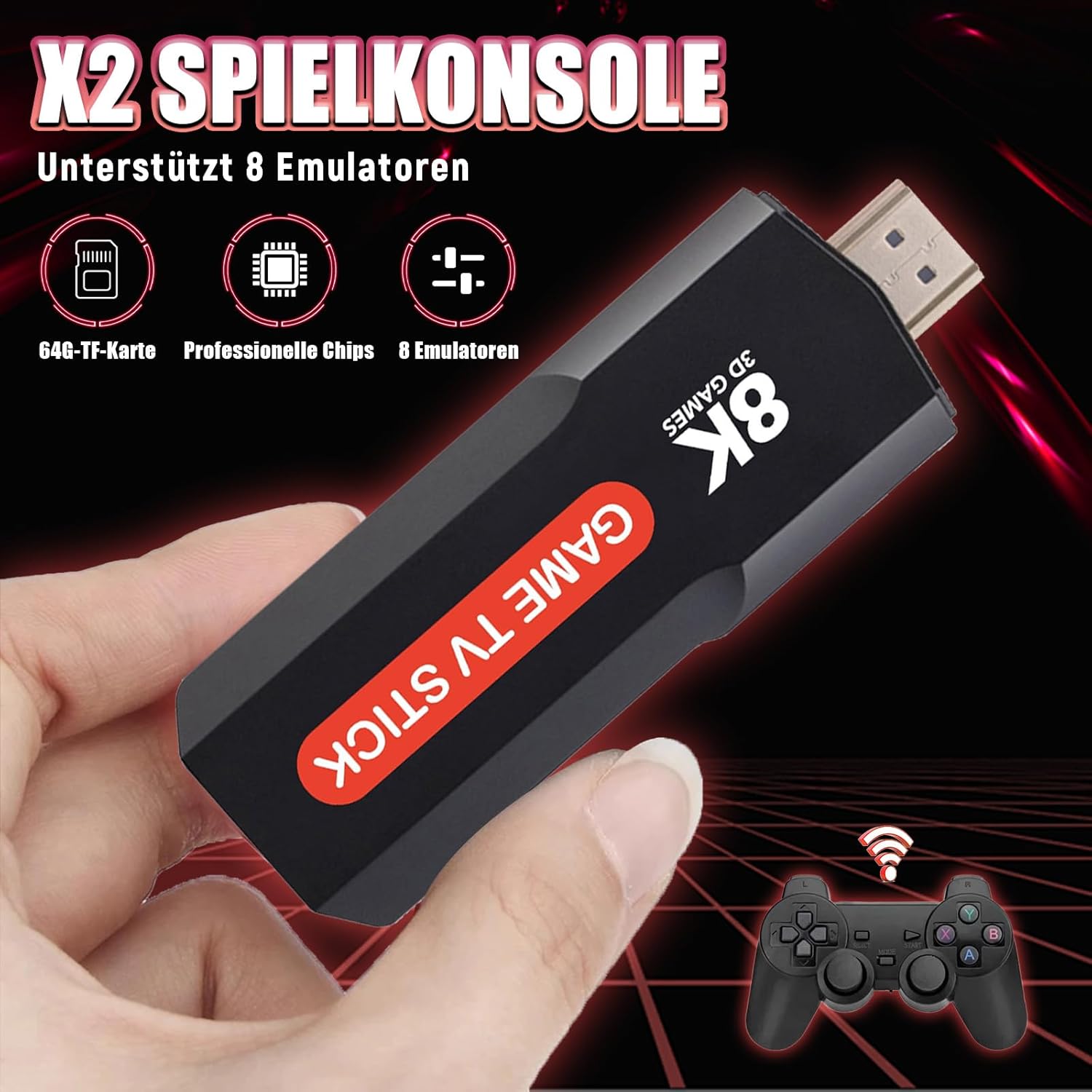 X2 Retro Game Stick, Retro Emulator Console with 10,000+ Video Games & 8 Emulators, Android 9.0, Plug and Play Game Console for TV with 2 x 2.4GHz Wireless Controllers, WLAN Support