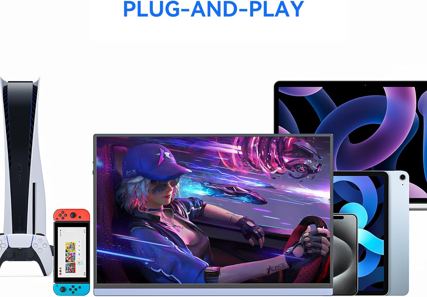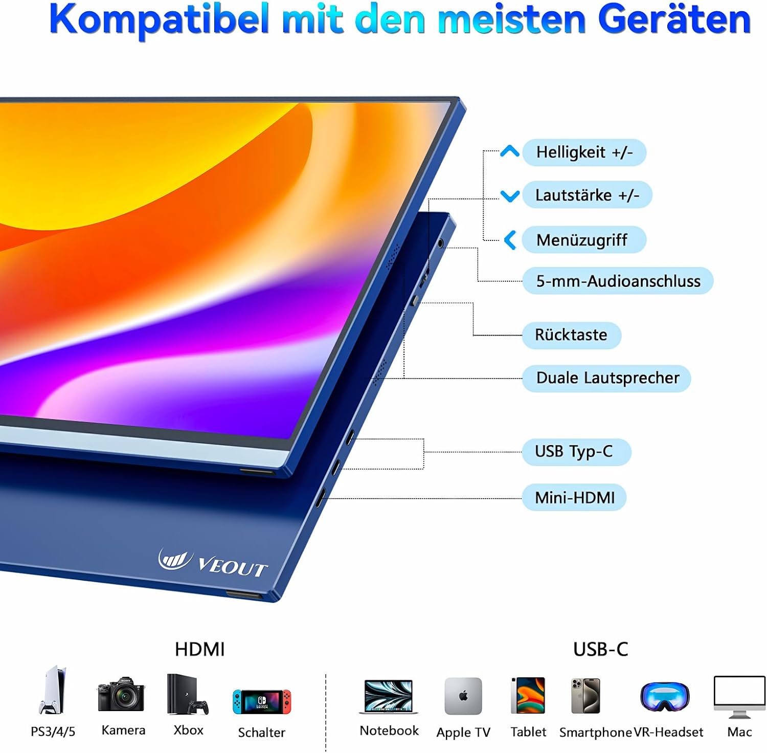 Plug-and-Play-Konnektivität: Einfache Verbindung über USB-C oder Mini-HDMI mit PC, Mac, Smartphones, PS5, Xbox und vielem mehr. Integrierte Dual-Lautsprecher und intuitives Menürad zur direkten Lautstärkeregelung – keine Treiber erforderlich!