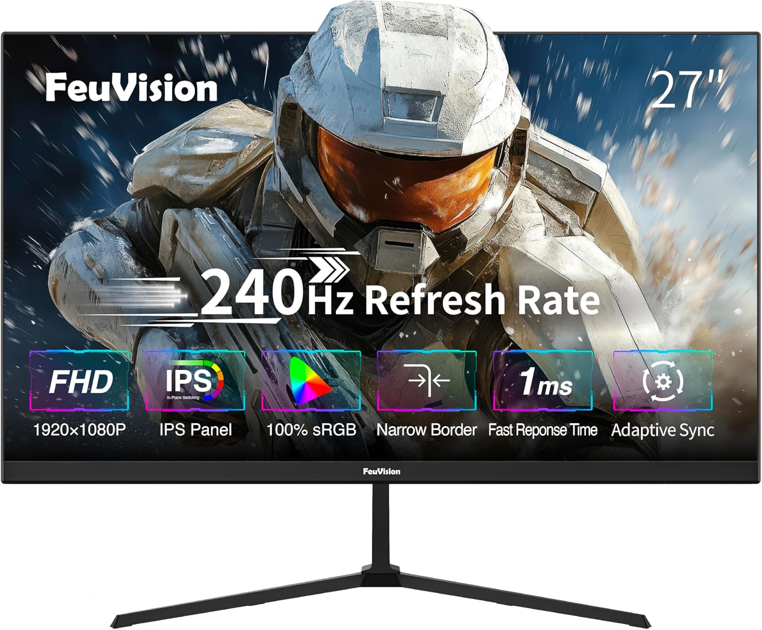 Gaming PC & Gaming Monitors – 27 Inch Gaming Monitor, 240Hz, FHD 1080p, PC Monitor, 1ms, IPS Panel, FreeSync, Adaptive Sync, VESA Mountable, Eye-Care, 100% sRGB, Frameless Screen, HDMI x 1, DP x 1